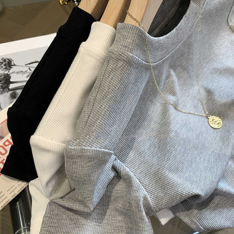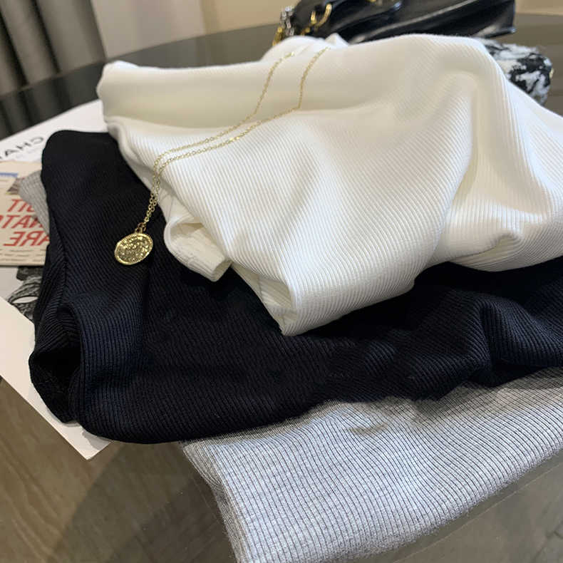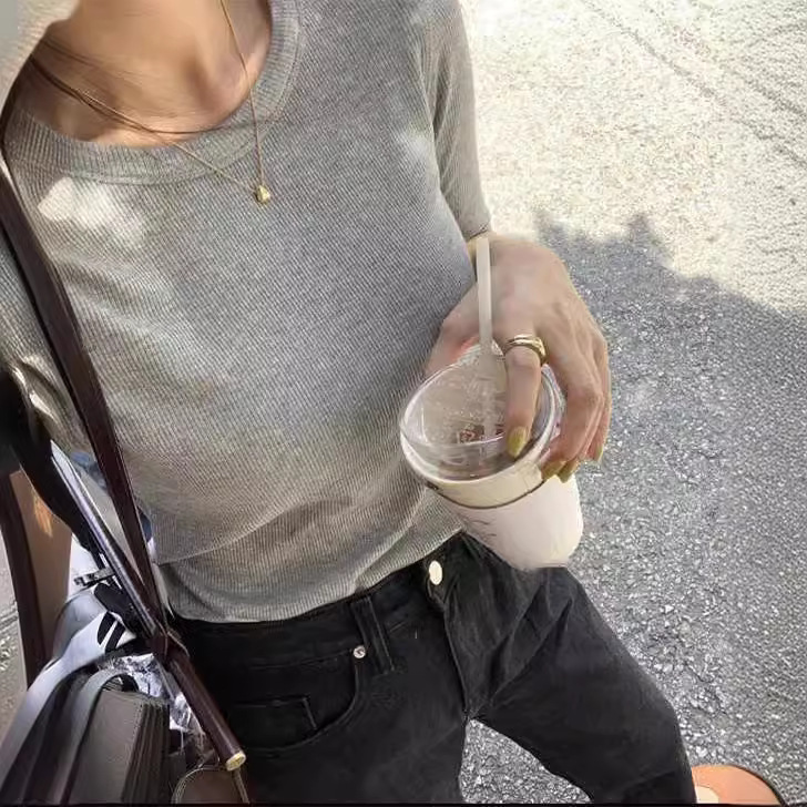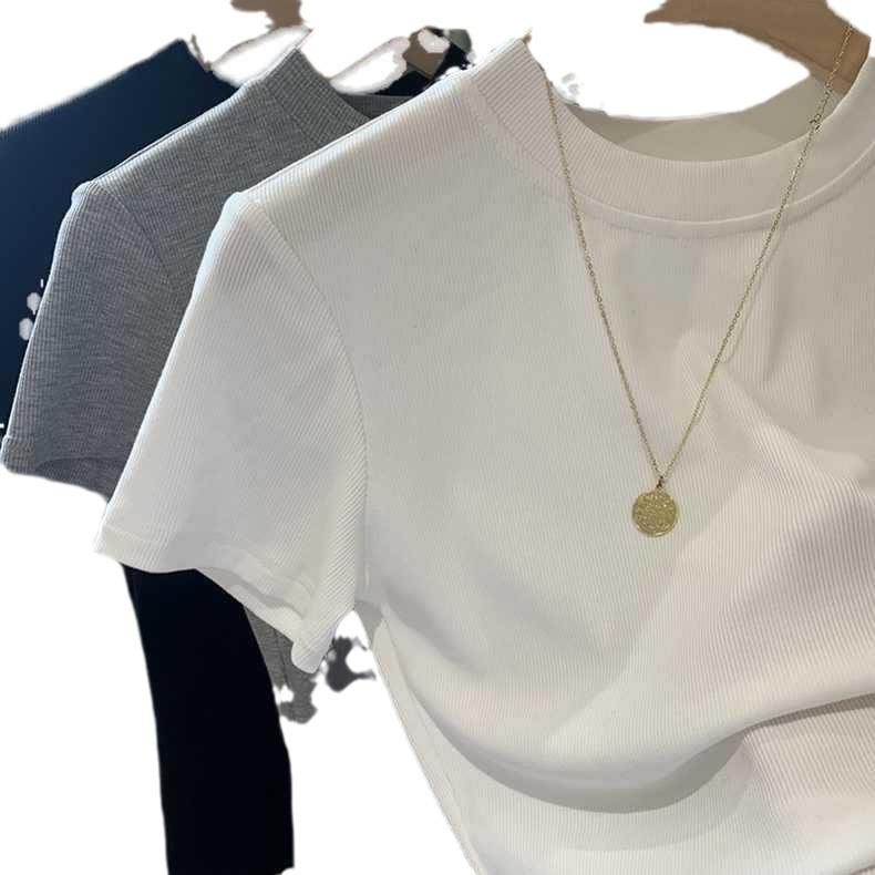 外贸大牌剪标原单正品!坑条螺纹基础圆领气质针织衫t桖短袖女夏