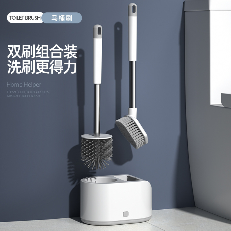跨境新款TPR软毛长柄创意家用卫生间一拖二硅胶马桶刷套装厕所刷