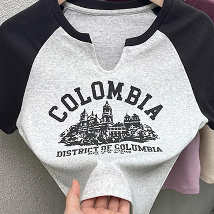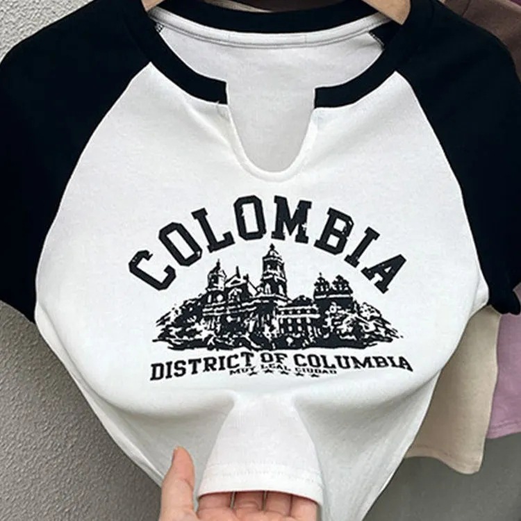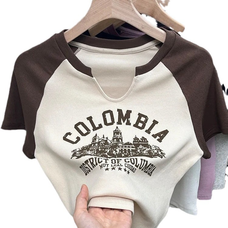 纯欲独特复古美式chic港味甜辣妹短款上衣设计感小众短袖t恤女夏