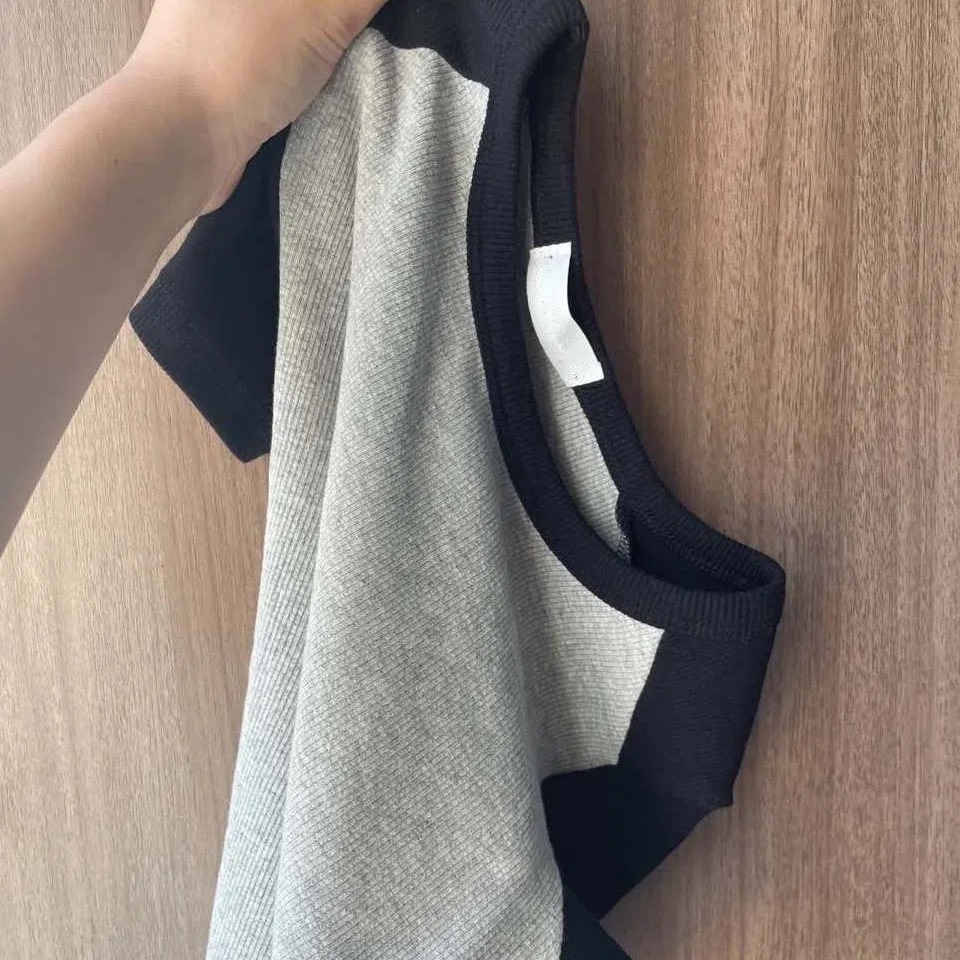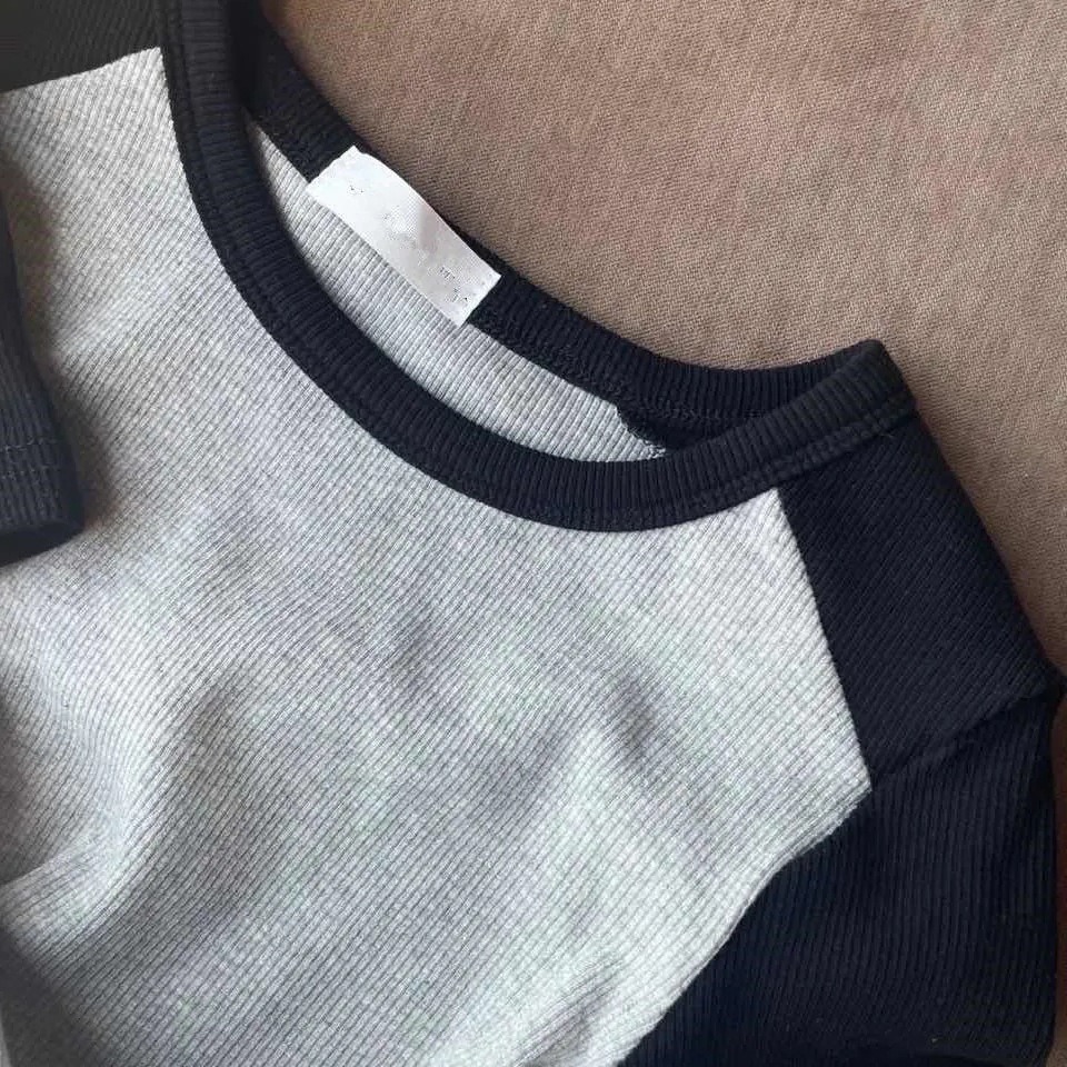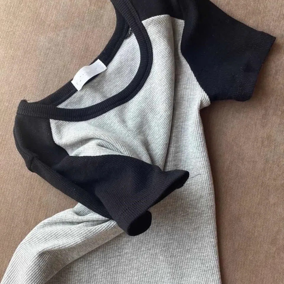 正肩短袖t恤女夏季年新款小众设计感撞色修身显瘦独特小上衣