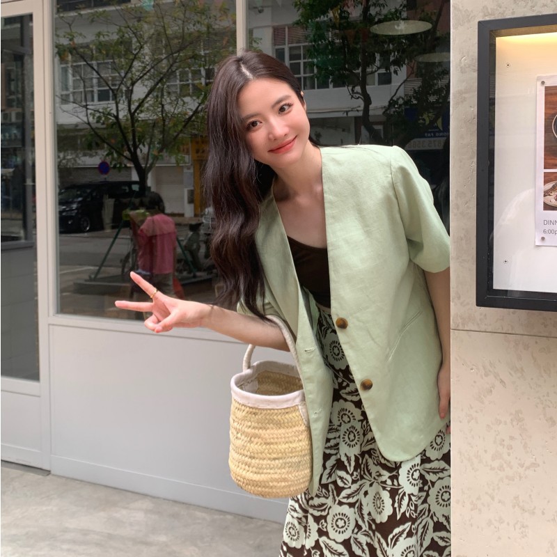 诠释美NEW OPEN西装外套女士夏季时尚v领气质百搭上衣82250
