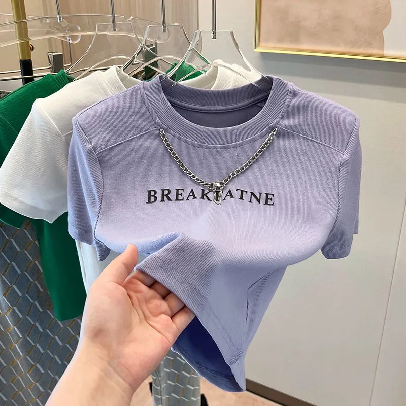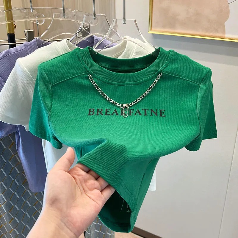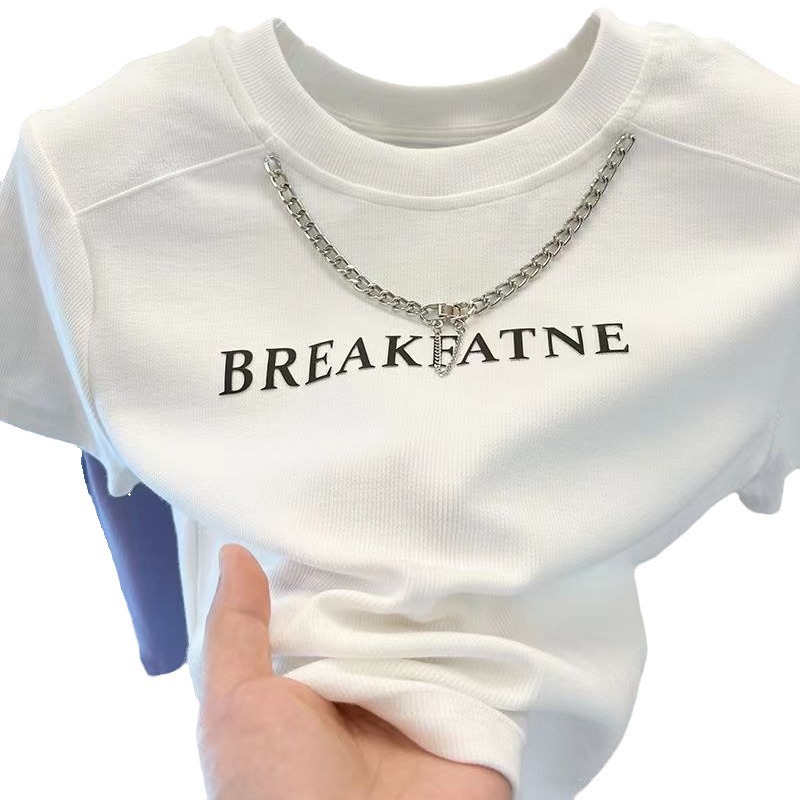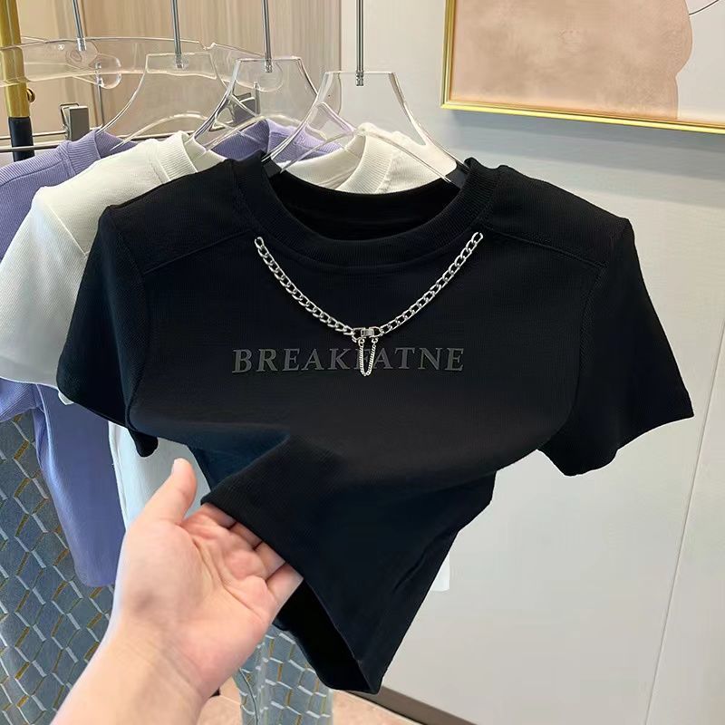纯欲性感甜酷辣妹短款t恤女夏季ins链条设计感小众短袖别致上衣