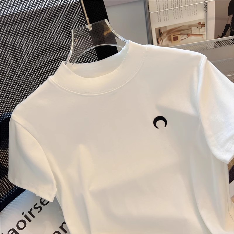 半高领针织短袖t恤女夏季设计感小众月牙刺绣体恤衫短款正肩上衣