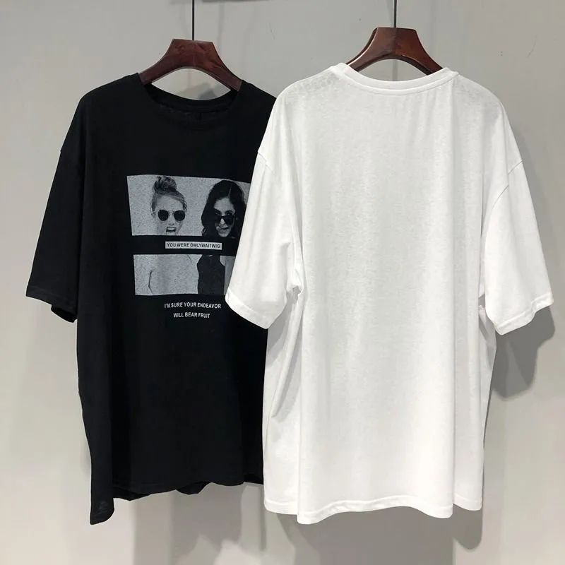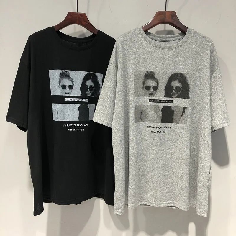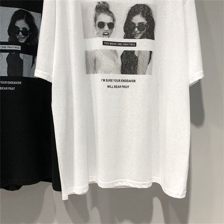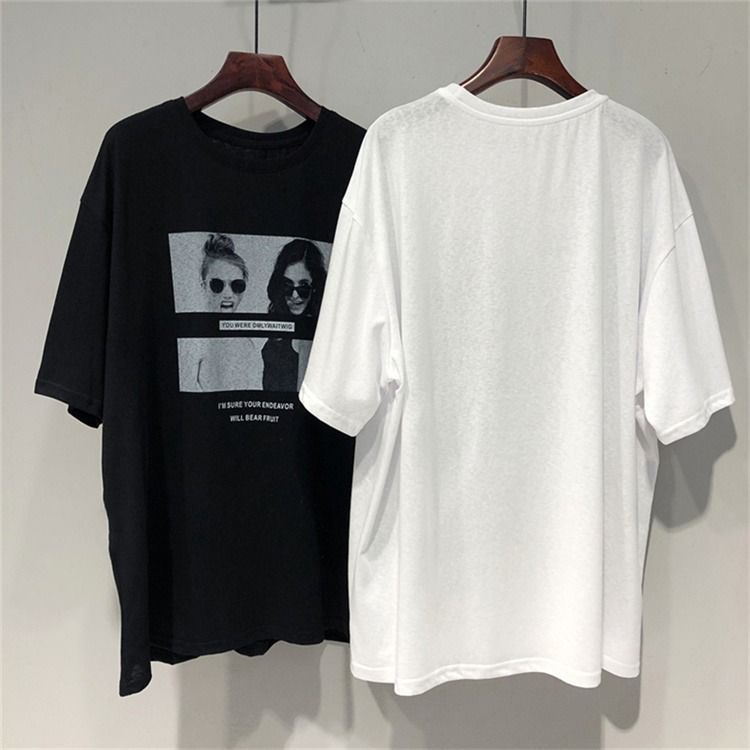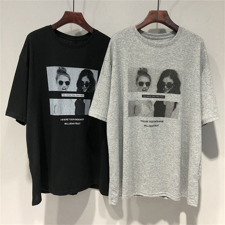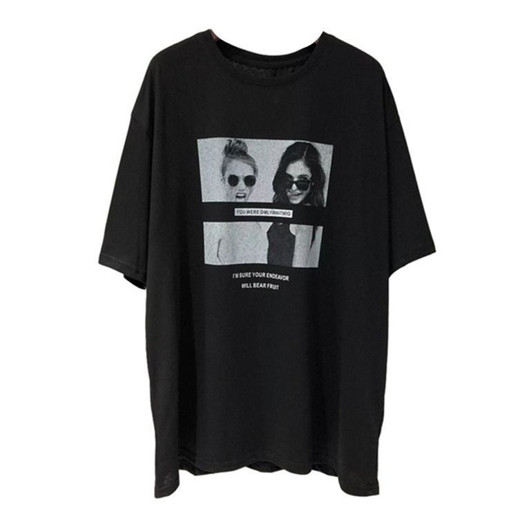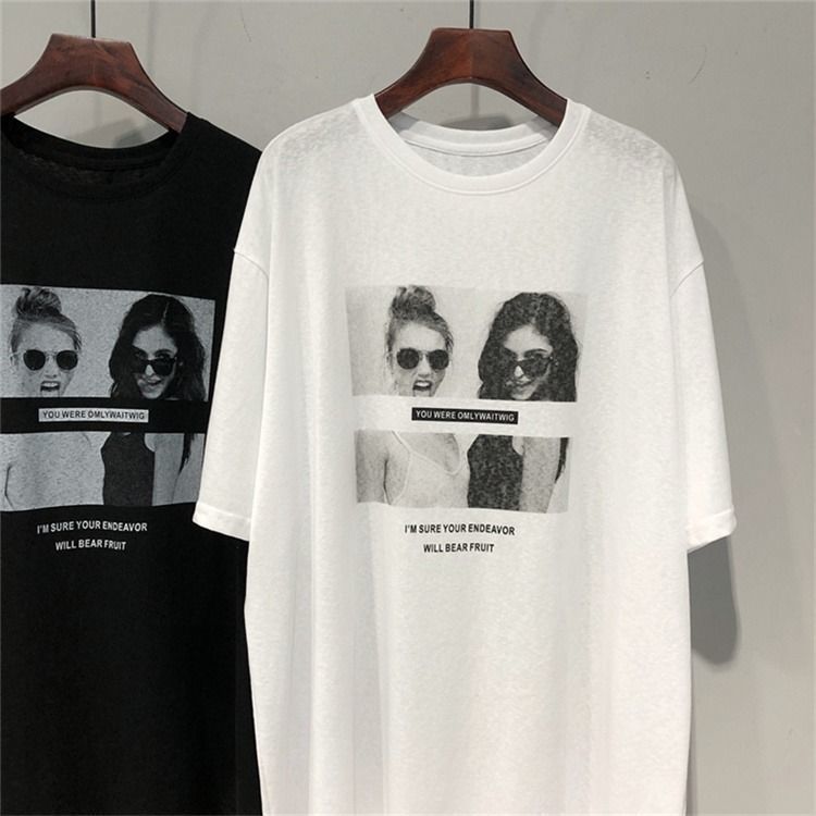 超手感莫代尔短袖t恤女夏季韩版新款美女印花宽松慵懒中长款上衣