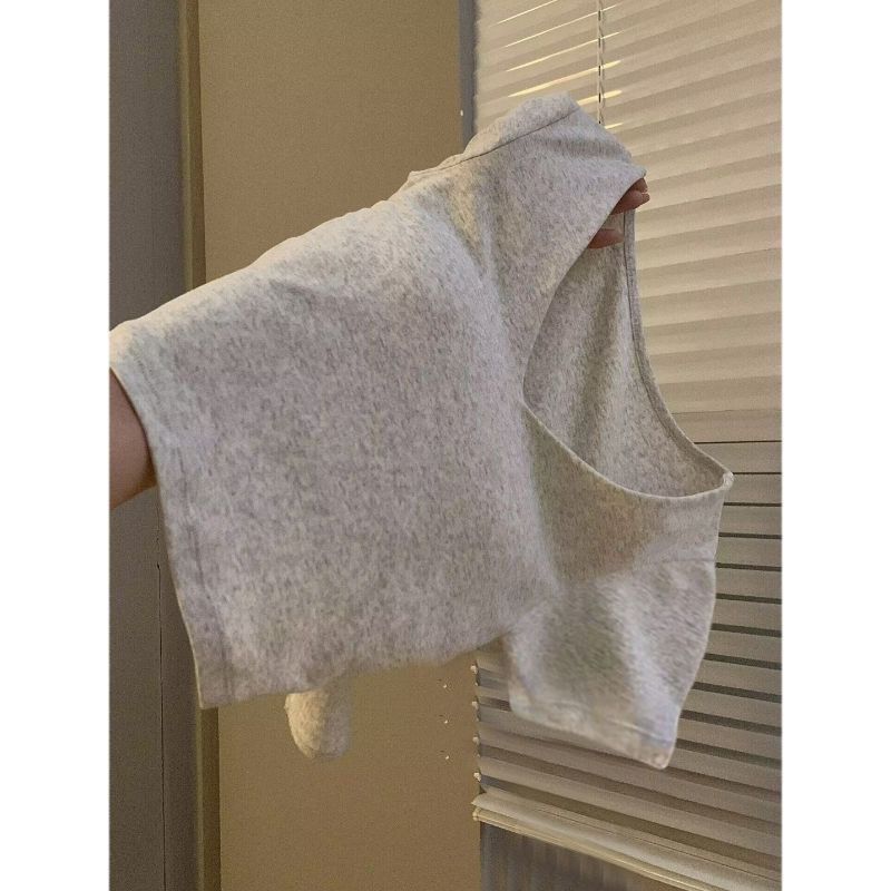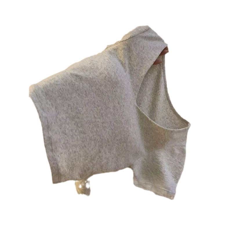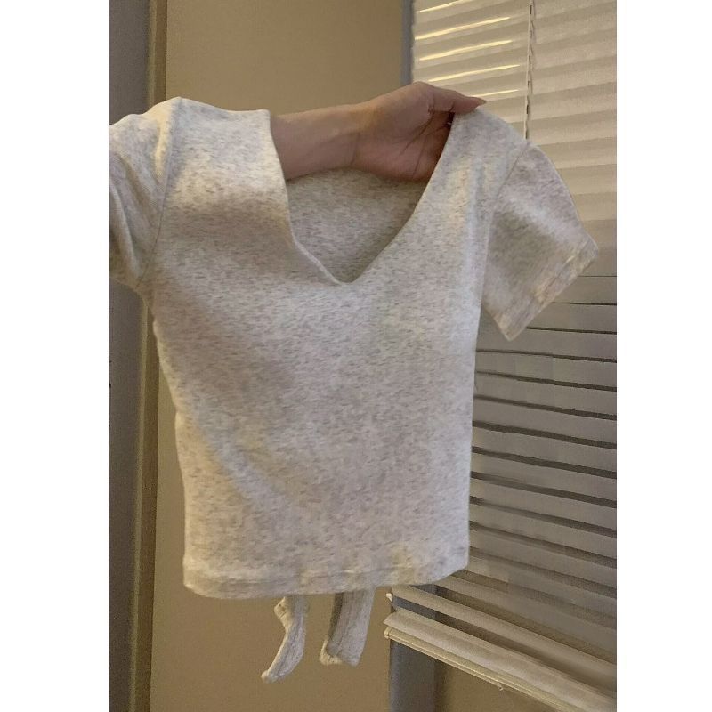 露背V领带胸垫白灰色短袖t恤女早春新款设计感小众甜辣妹短款上衣