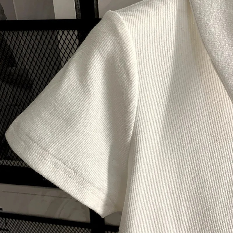 纯欲风螺纹正肩短袖T恤小个子短款polo衫女夏季修身显瘦辣妹上衣