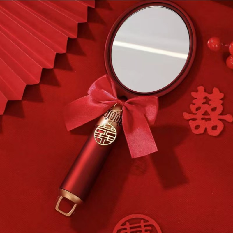 - 丝绸红010手持圆镜(送喜帖吊穗)
