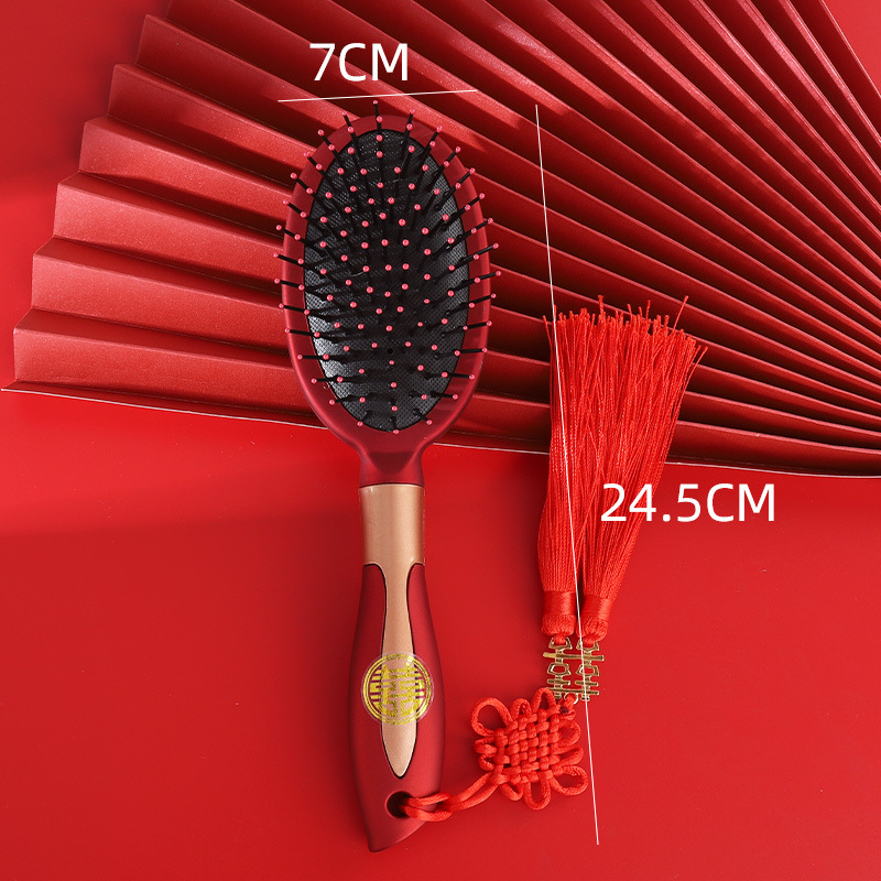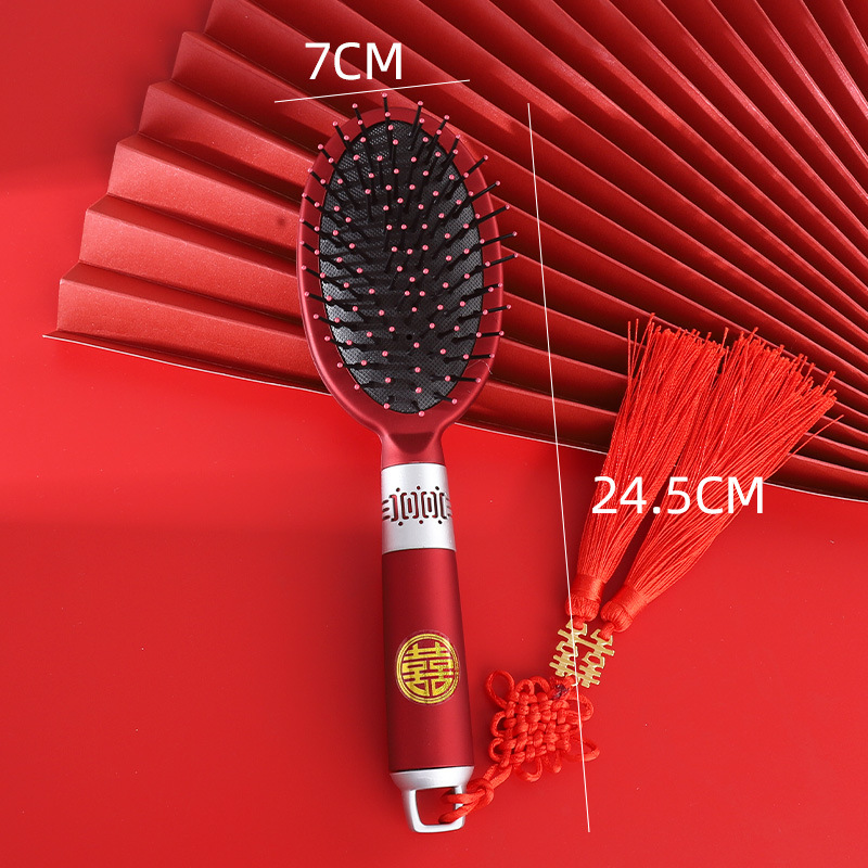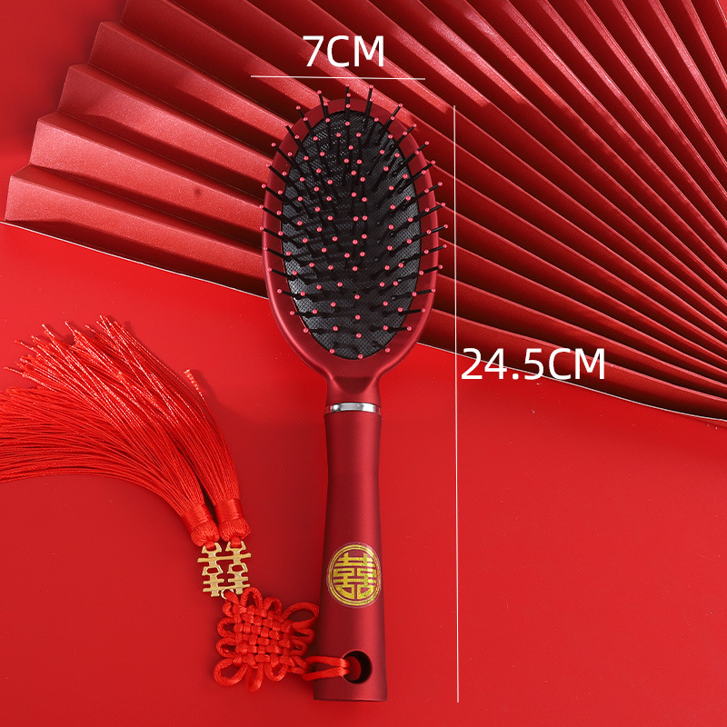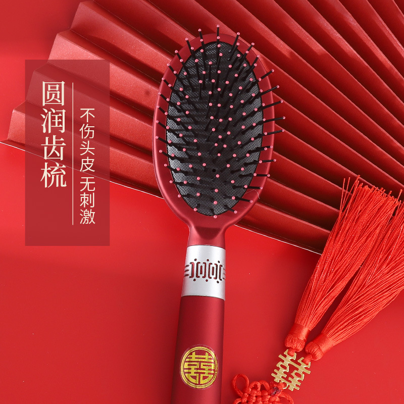 - 丝绸红蝴蝶结喜字椭圆气垫梳