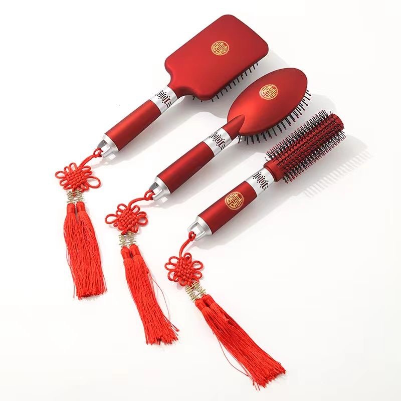 - 002-85金红中华红蝴蝶结喜字方圆气垫梳