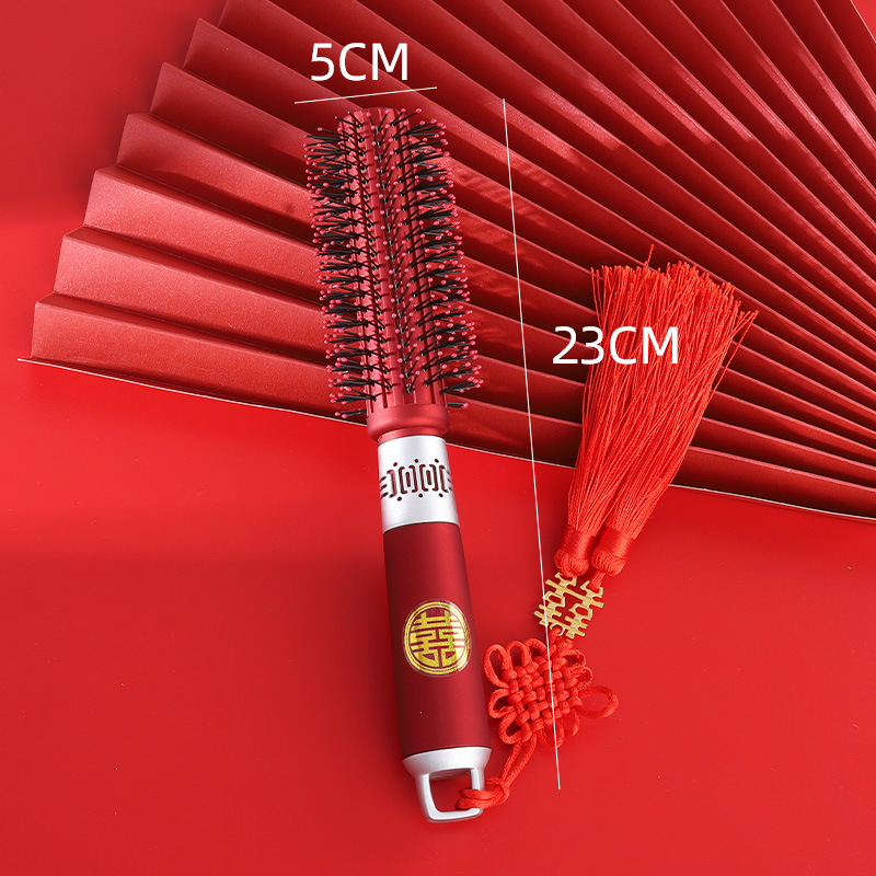 - 002-11金红中华红蝴蝶结喜字卷发梳