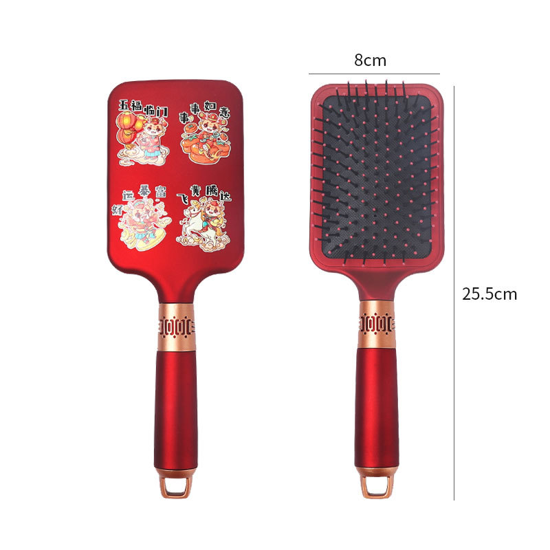 国潮新品新年红发财 气垫梳子 按摩梳本命年国风美发梳子