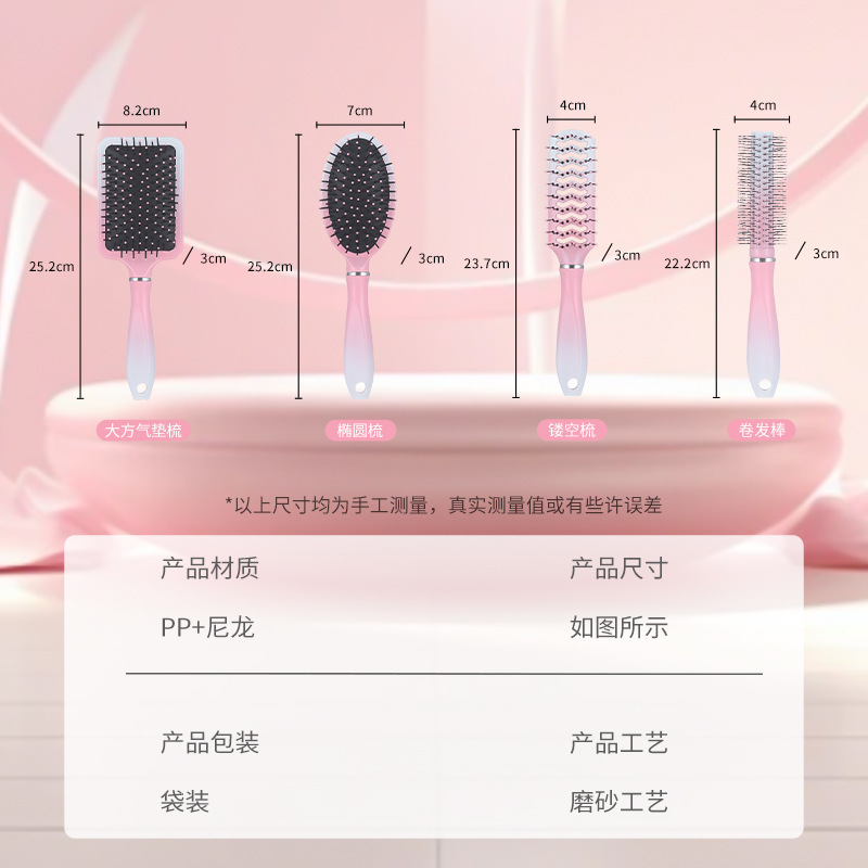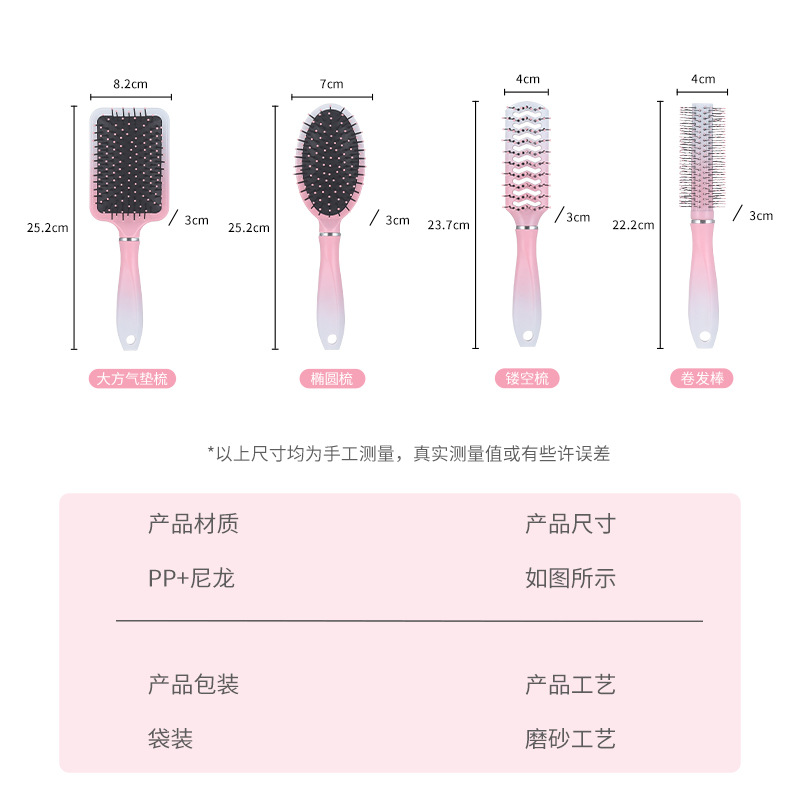 彩虹泡泡糖气垫梳子女生专用粉色卷发棒按摩梳