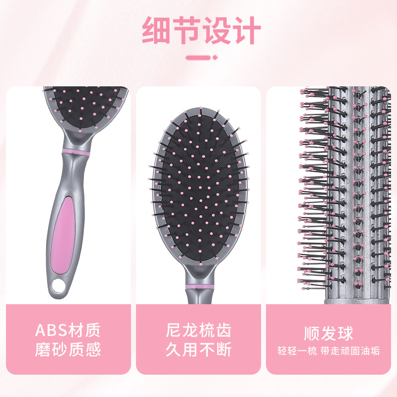 粉色纽约气垫梳子女生专用磨砂拼色美发按摩梳