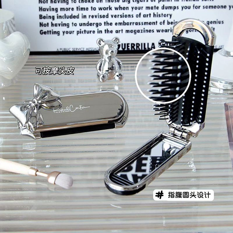 便携折叠梳+银色蝴蝶结【带可抽取便携镜】