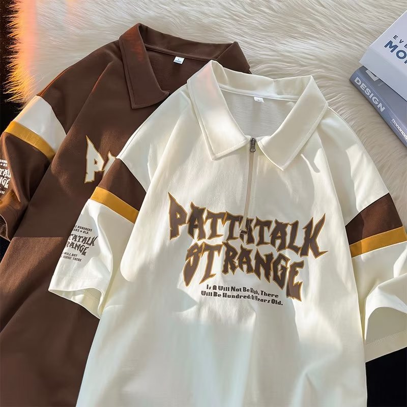 纯棉翻领夏季POLO衫短袖T恤男日系宽松学院风情侣复古休闲男士上