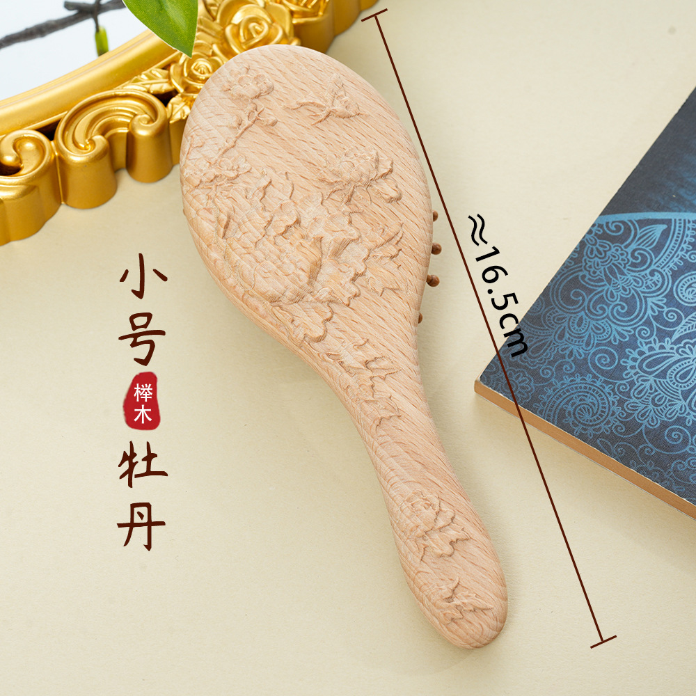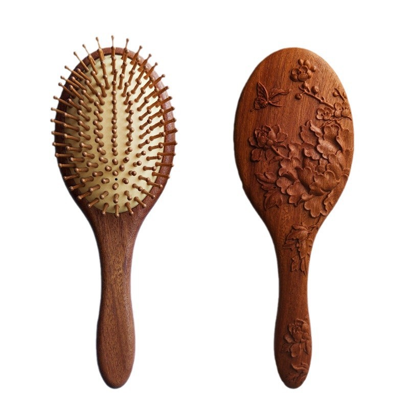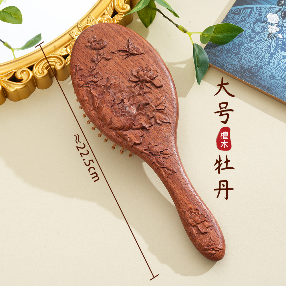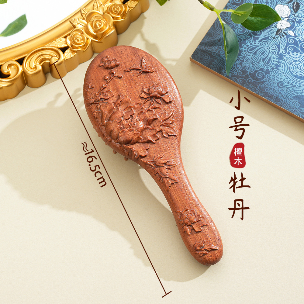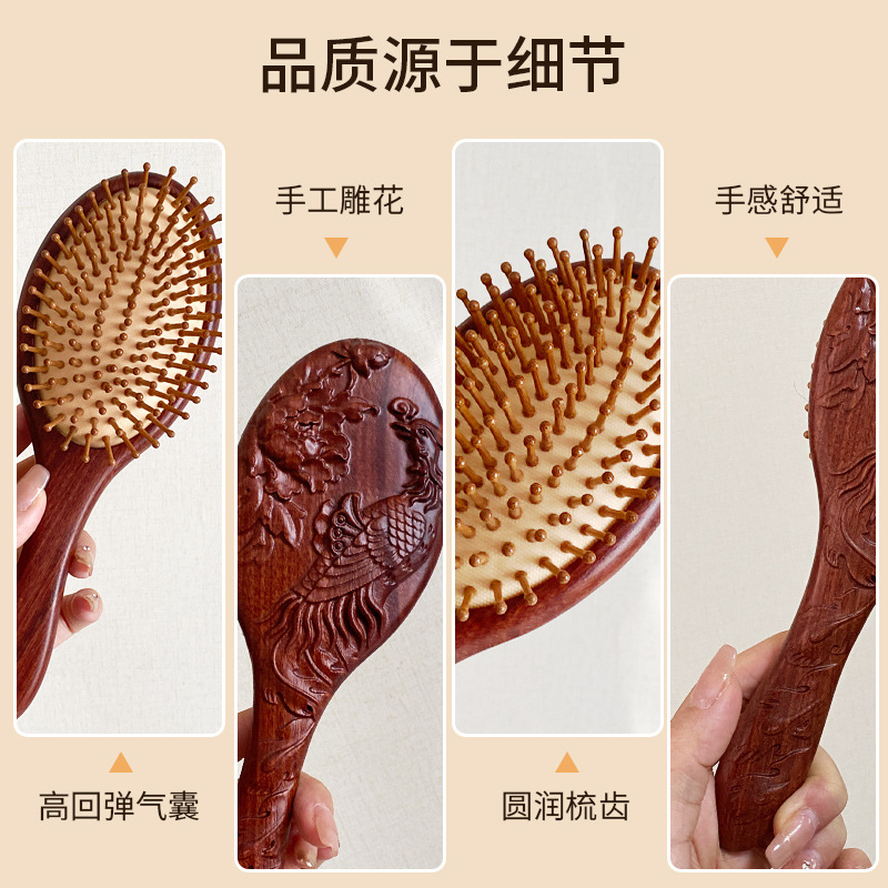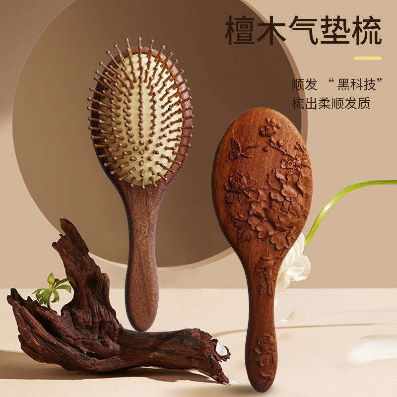 檀香木雕刻气垫按摩梳气囊头部经络按摩梳小巧气垫木梳