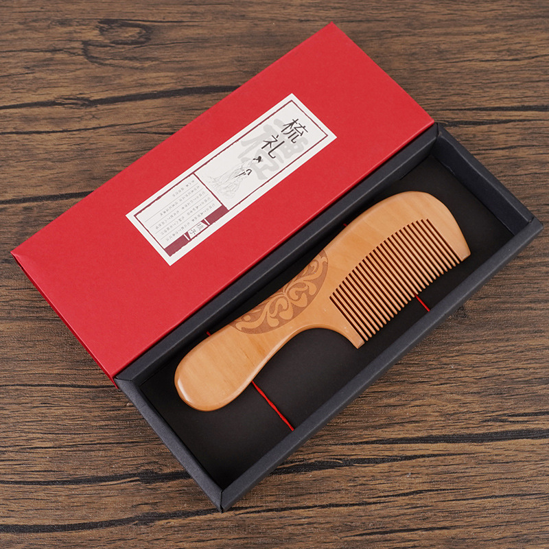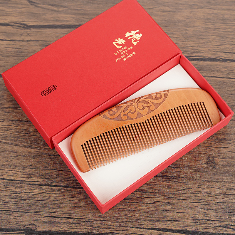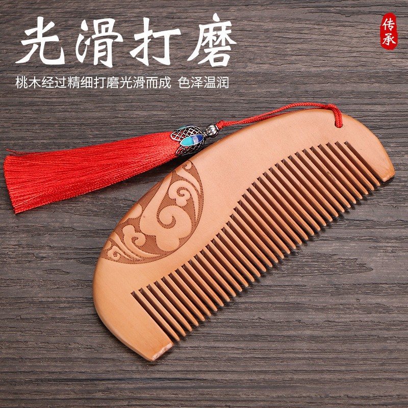 桃木梳子加厚礼品雕花梳子密齿旅游纪念大号木梳