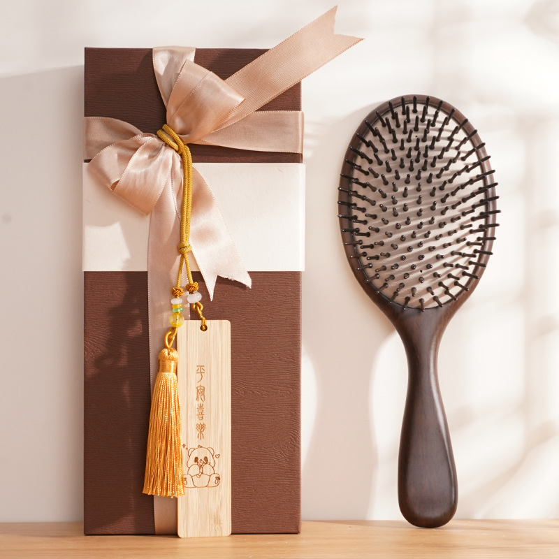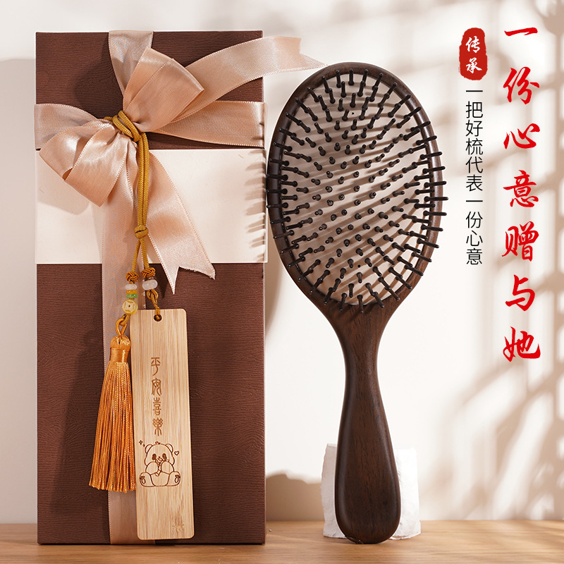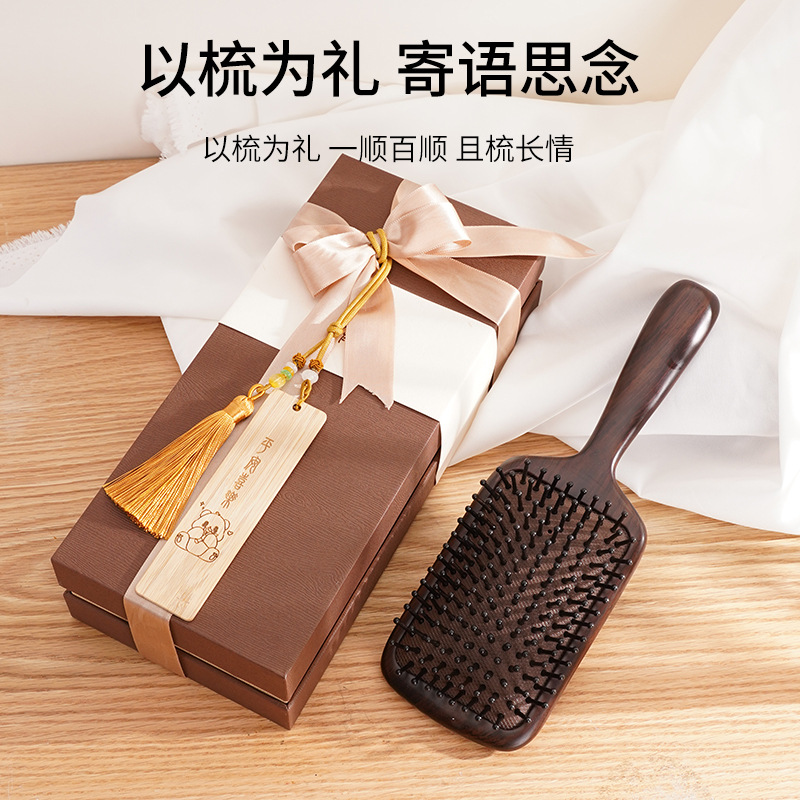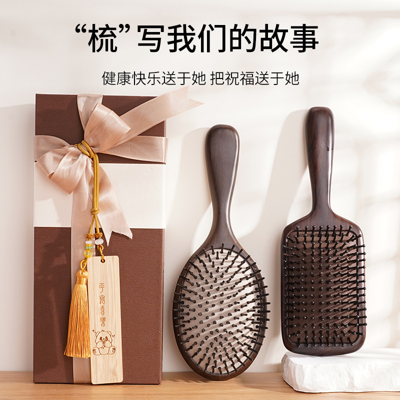 黑檀木大板气垫梳家用按摩梳天然实木大号气囊梳头皮按摩卷发梳子