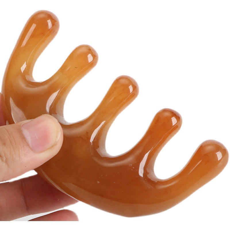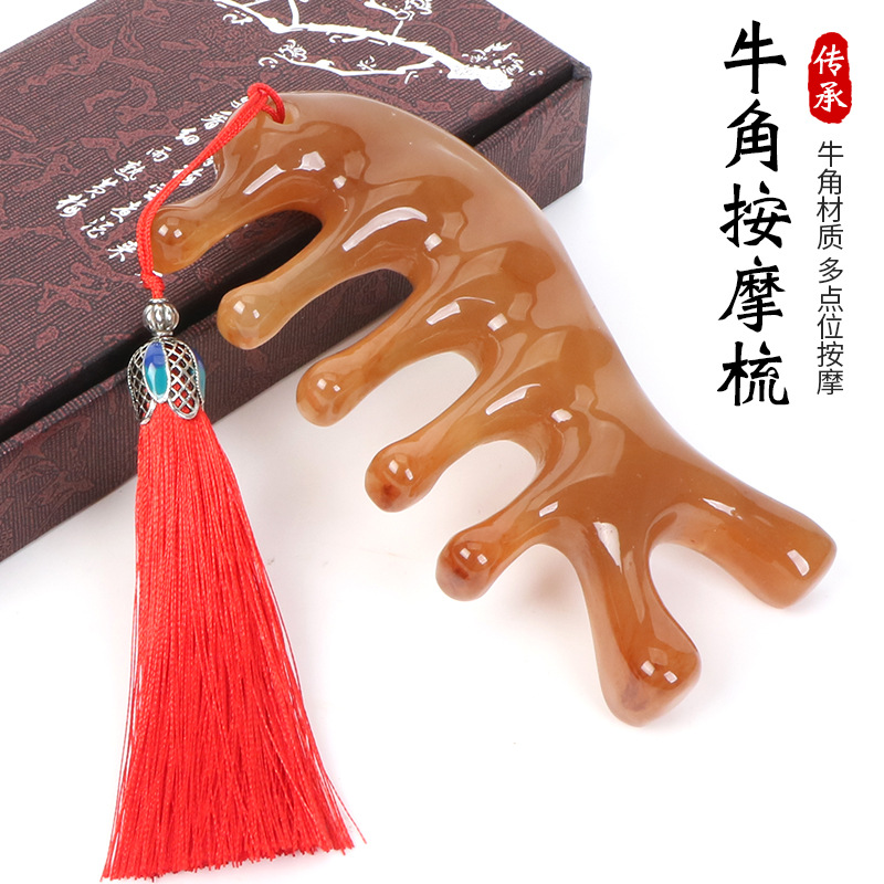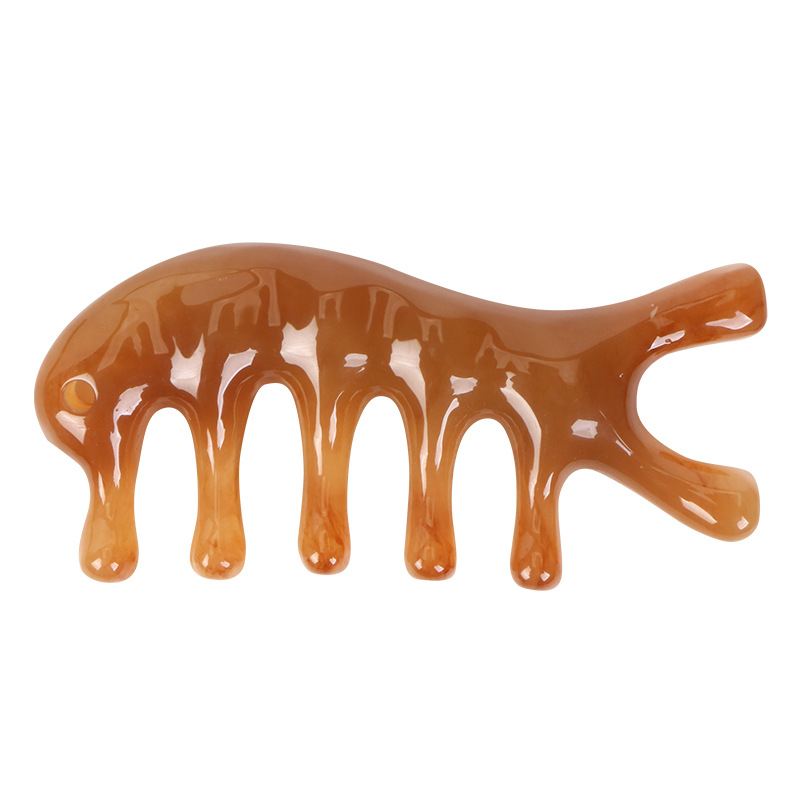 合成牛角头部全身面部肩颈按摩梳五齿海豚经络梳刮痧专用耐摔