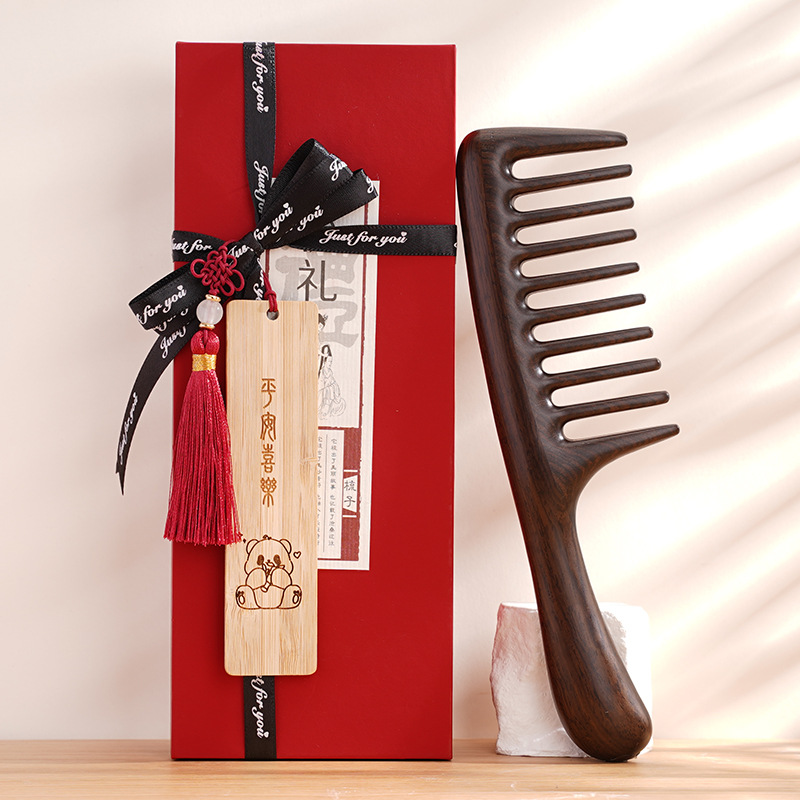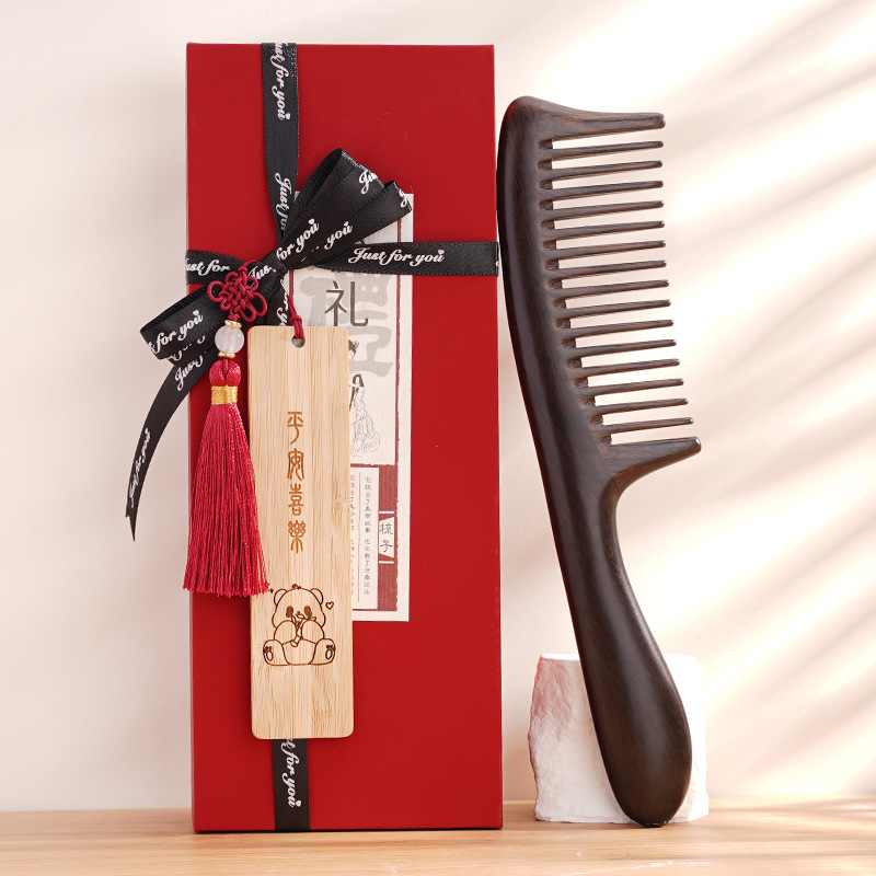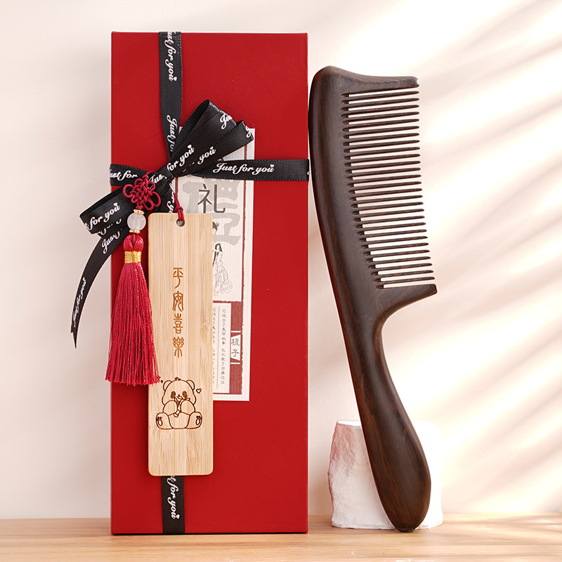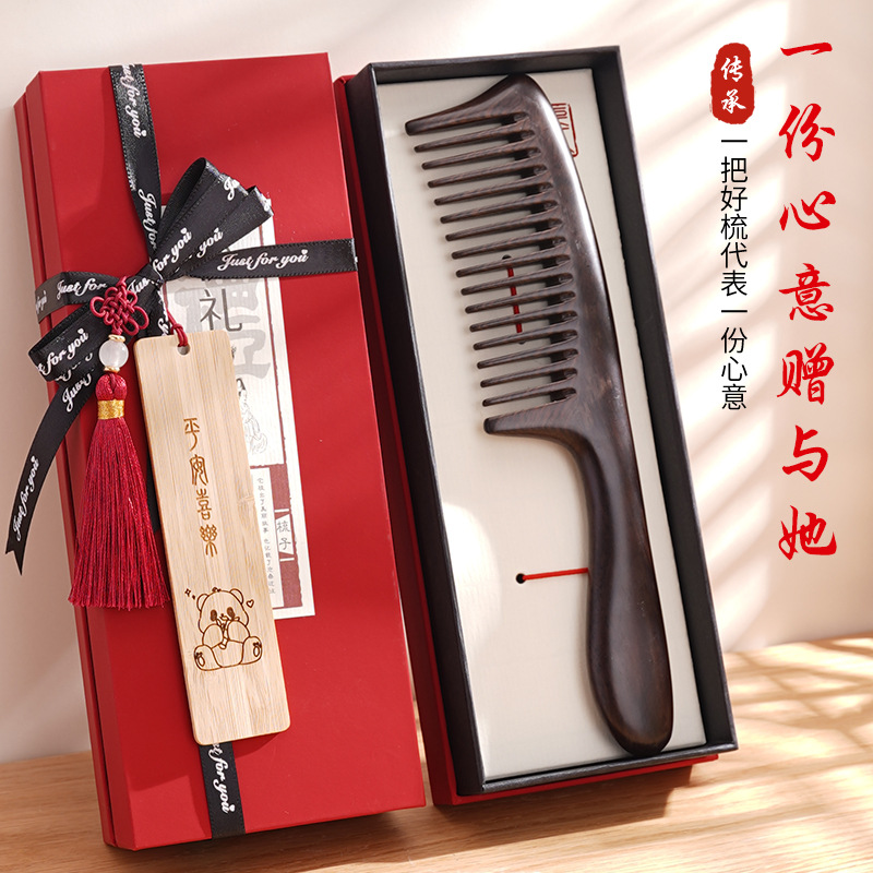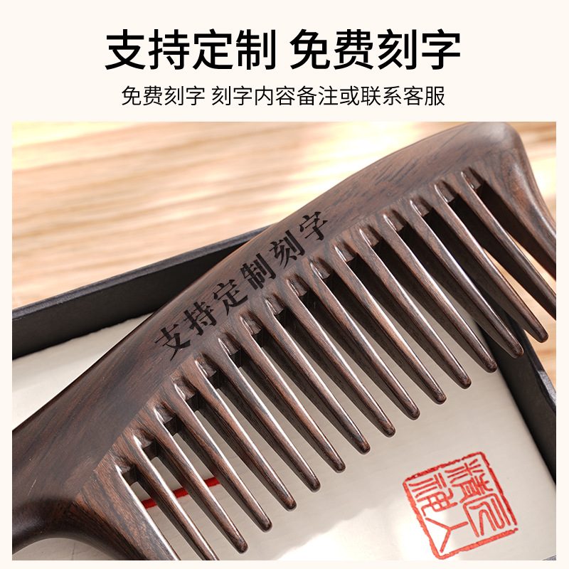 天然黑檀木梳宽齿梳子头皮按摩女士经络大齿梳大号家用卷发梳长发