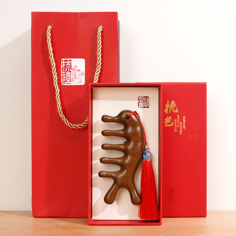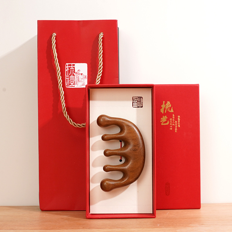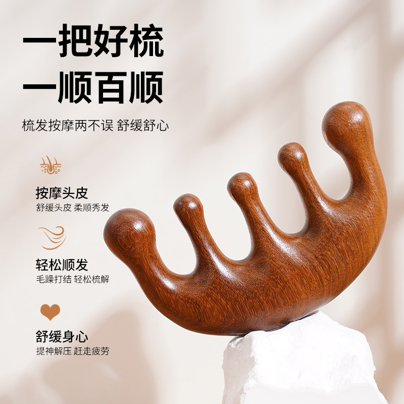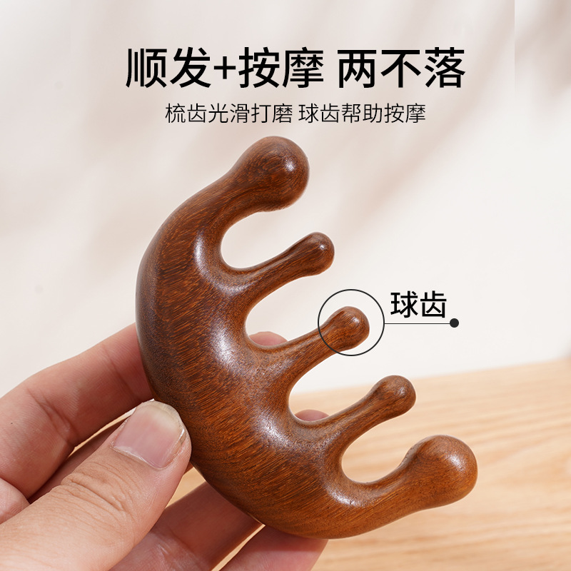 头部经络梳子金丝檀青蛙器抖音檀木按摩梳五爪梳海豚梳木梳五齿梳