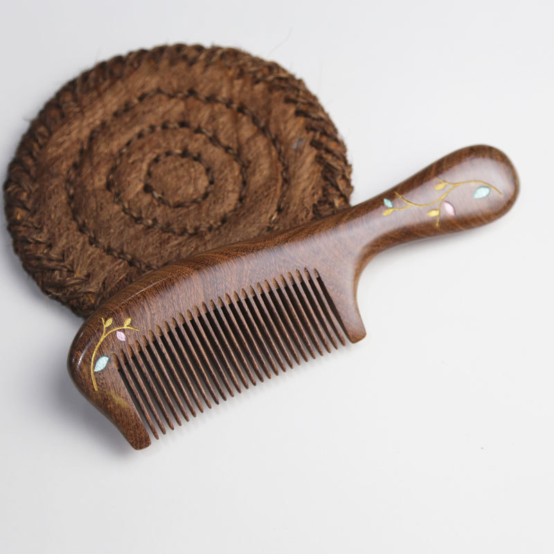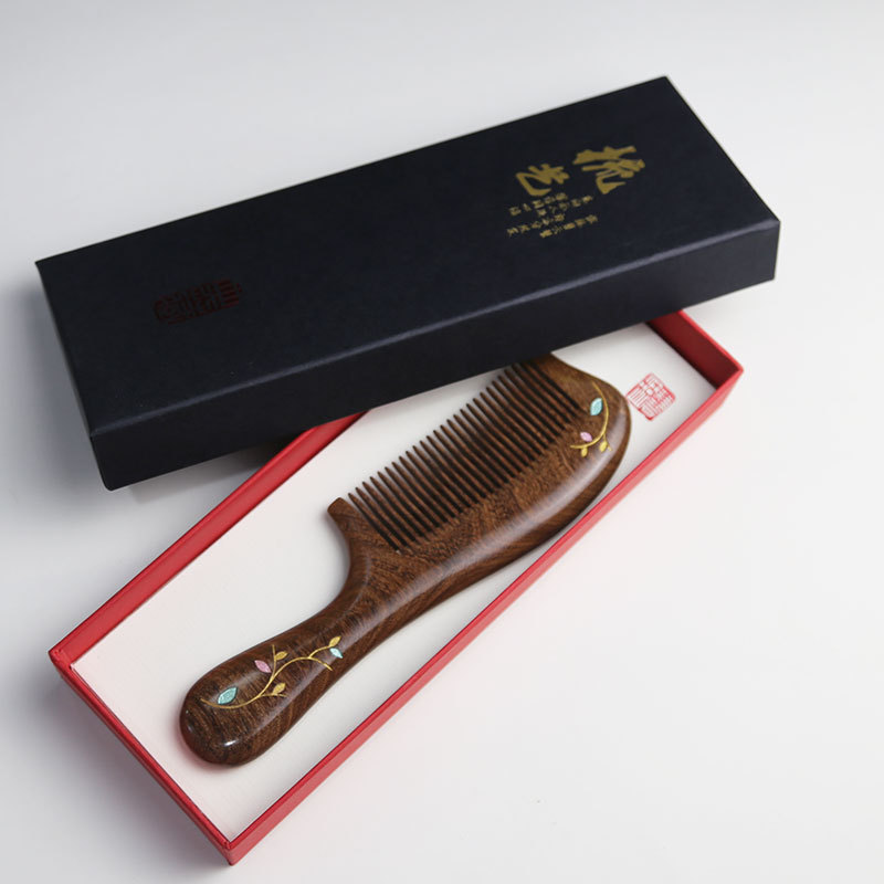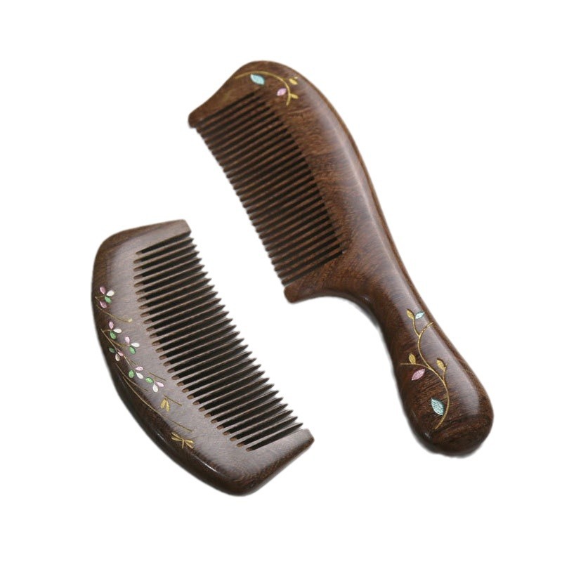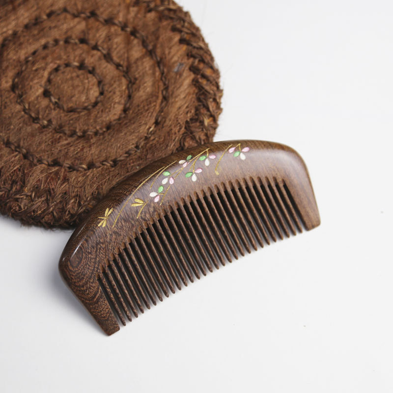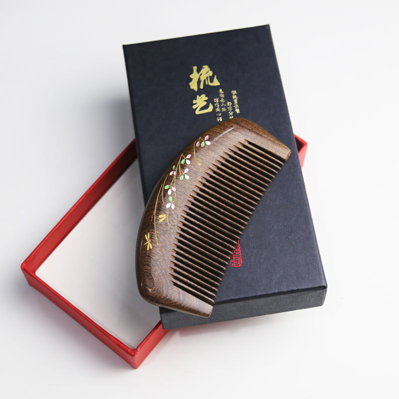 黑金檀彩绘柄梳小月梳礼品梳子手工彩绘礼品礼盒