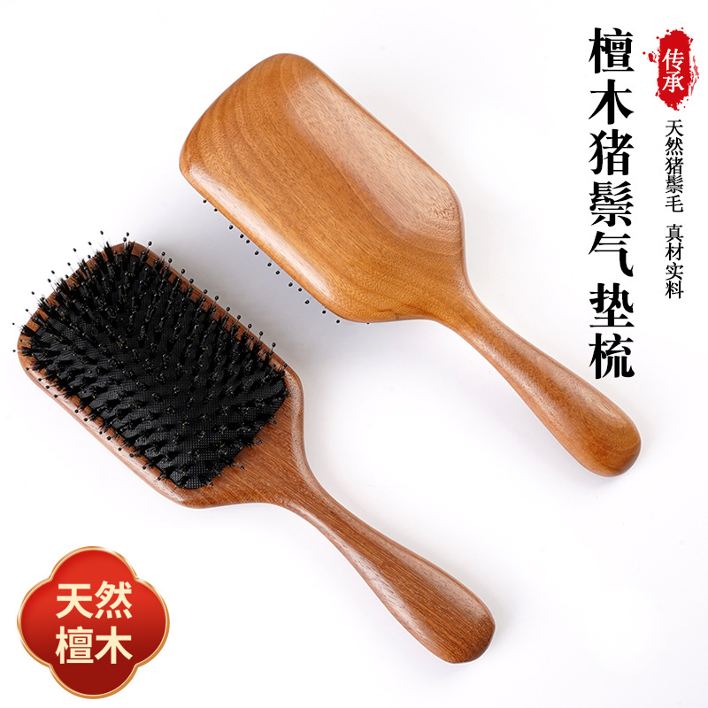 按摩气垫梳直发梳子顺发梳大板木柄梳美发梳子现货批发猪鬃毛梳子