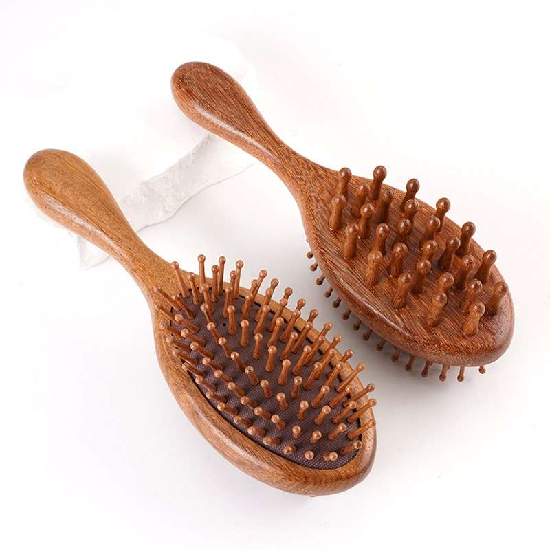 檀木气垫梳气囊梳刻字打字按摩头皮经络梳头部气垫金丝檀木梳两用