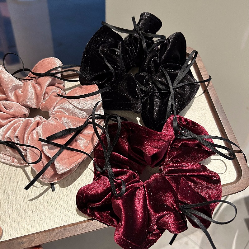 韩版丝绒蝴蝶结大肠发圈简约宽松发绳扎头绳发饰头饰女