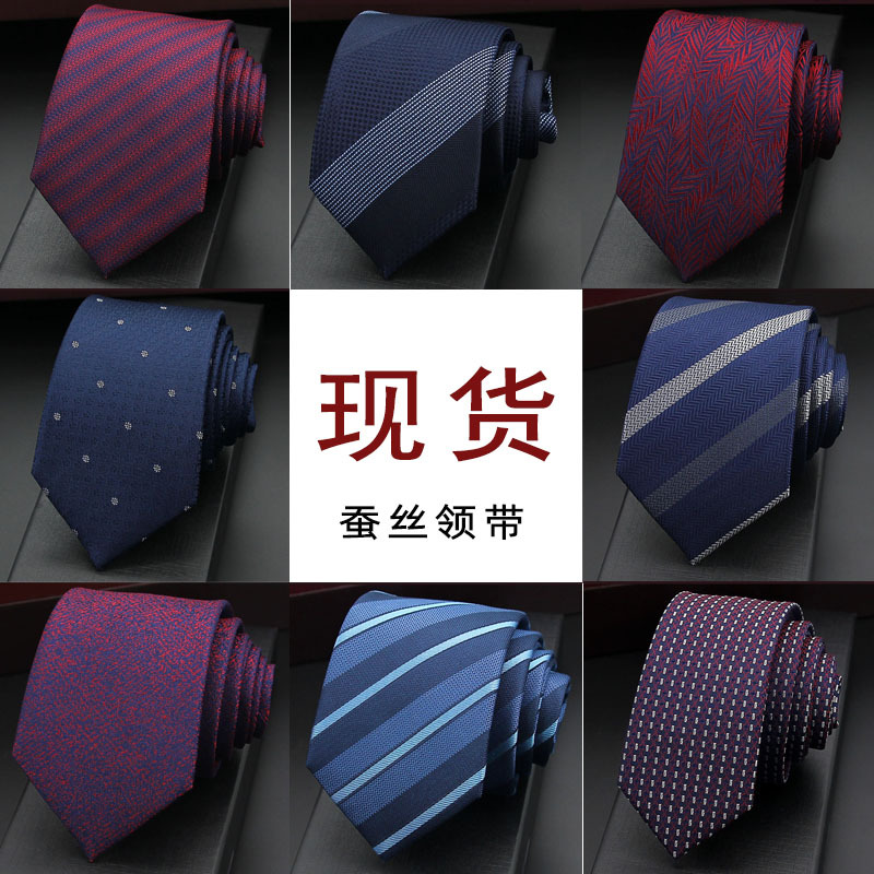 男士桑蚕丝8CM商务正装手打领带 婚礼蓝色斜纹西装提花领带