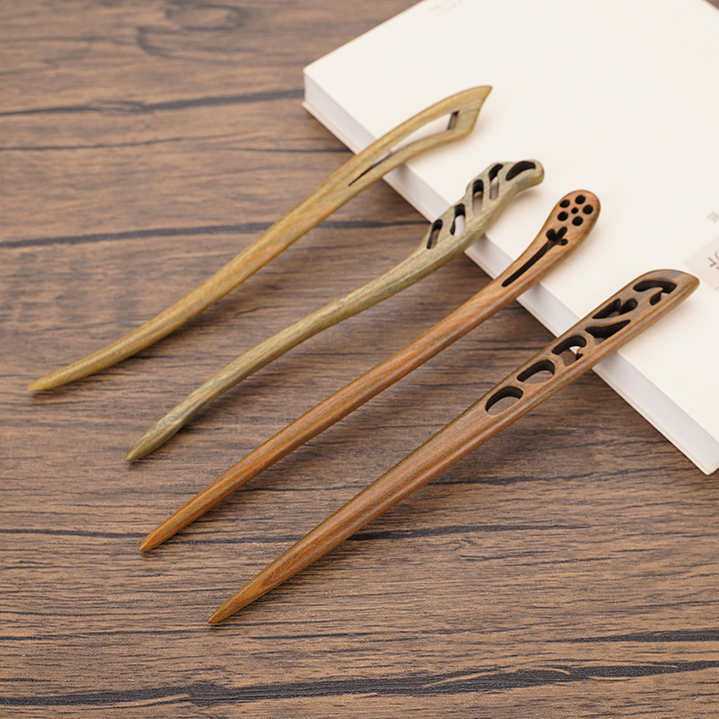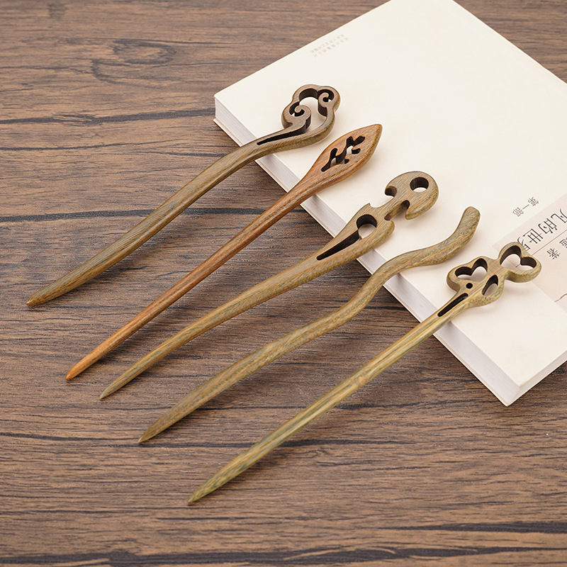 古风汉服发簪檀木钗子复古盘发古装挽发国风木头旗袍头饰绿檀木簪