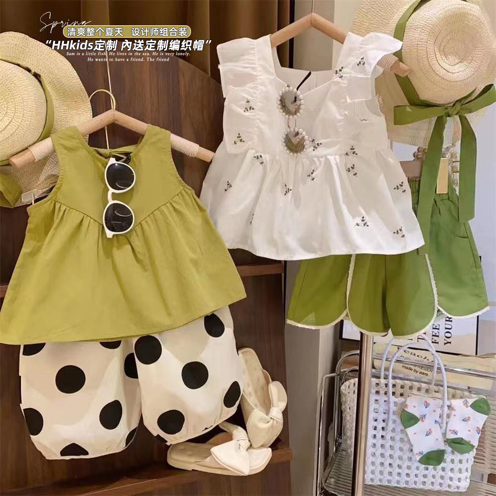 新品女童休闲无袖背心阔版短裤洋气清凉两件套2025夏装夏季套装