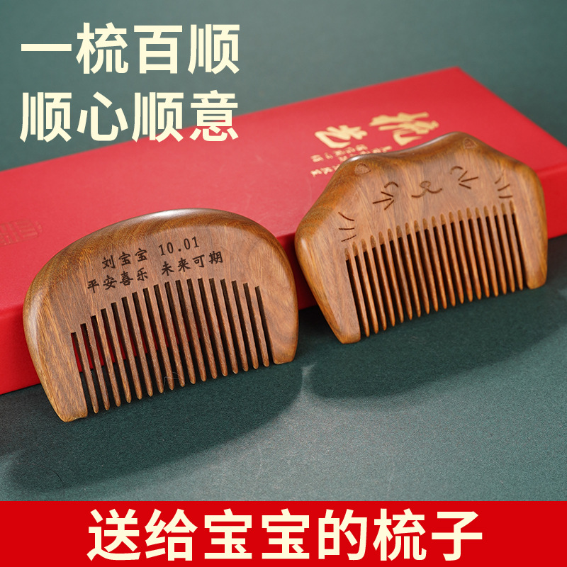 阿根廷绿檀木梳猫咪便携口袋梳儿童周岁纪念小梳子包包梳迷你精致
