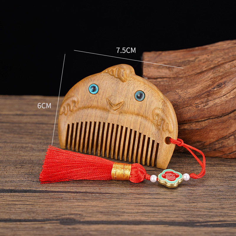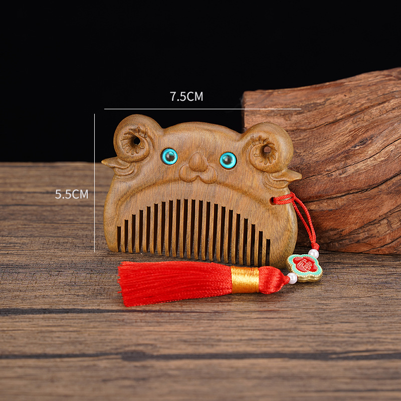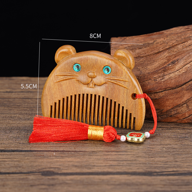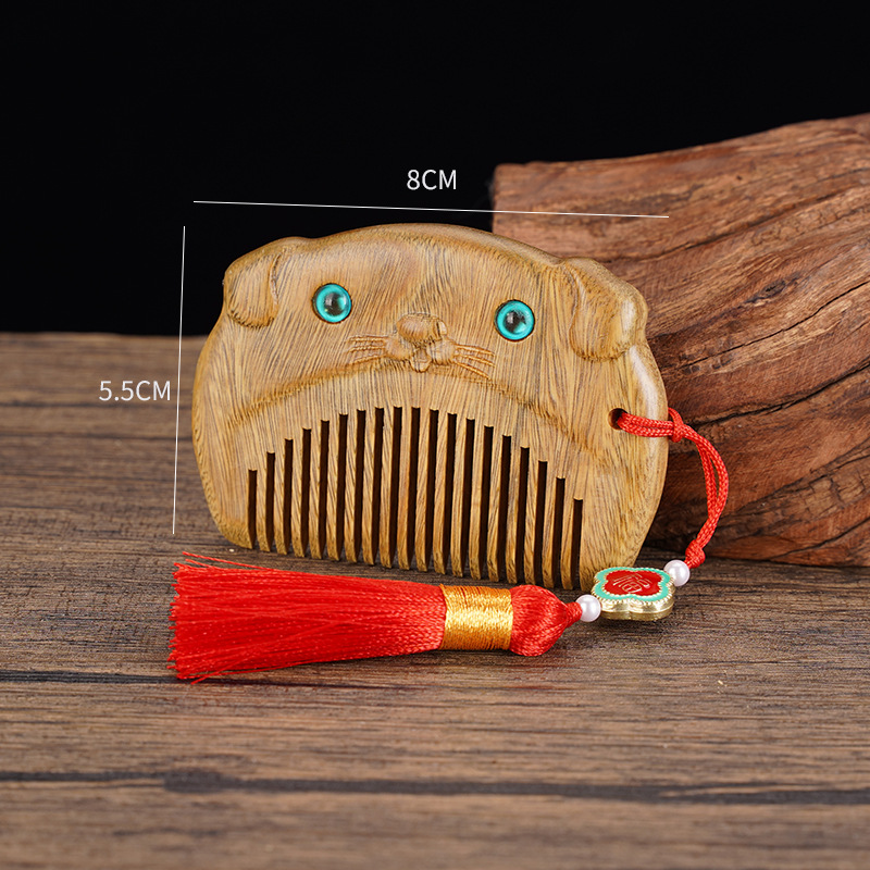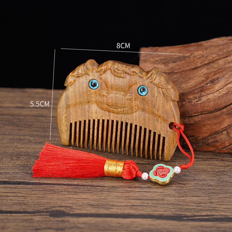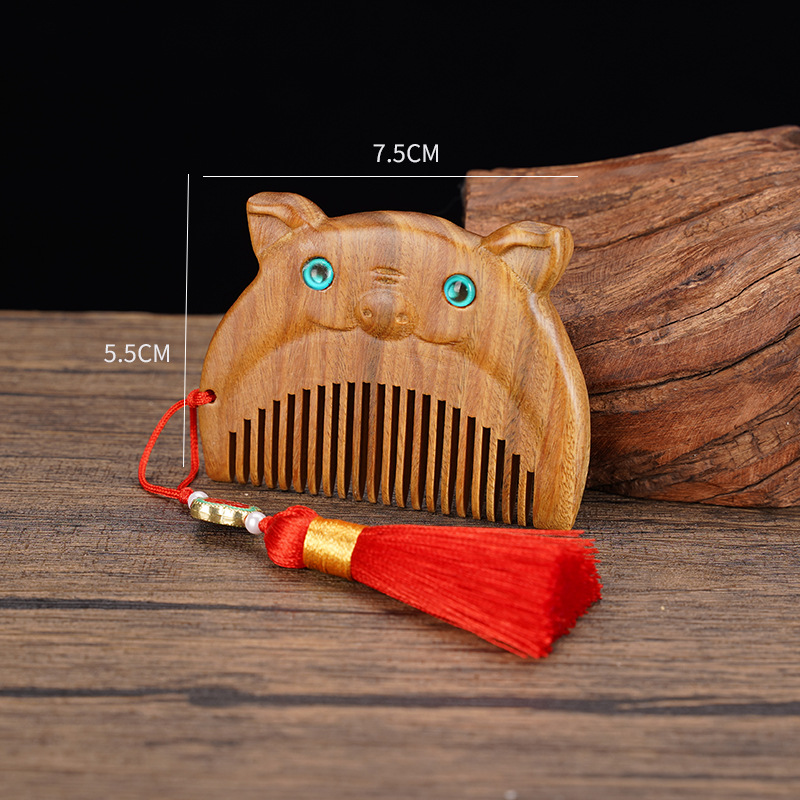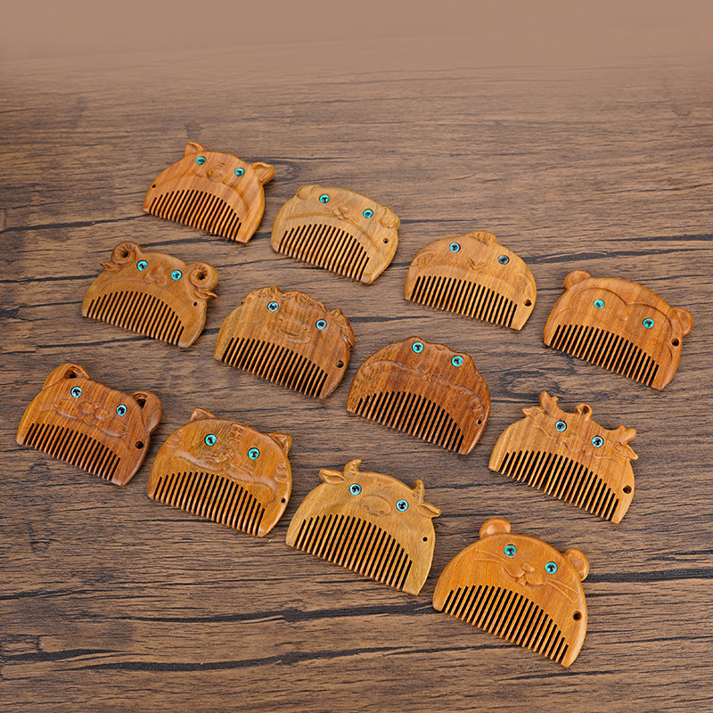 绿檀木生肖口袋梳雕花女生小巧便携美观实用包包梳按摩檀木梳