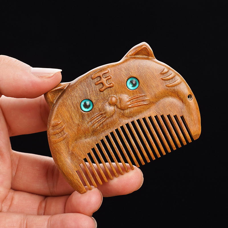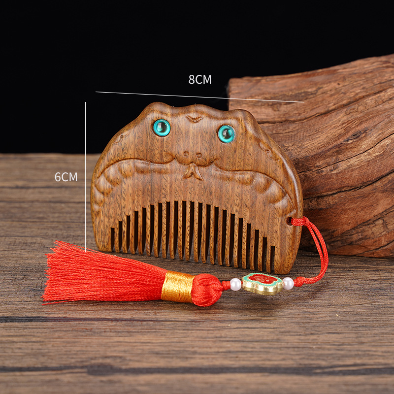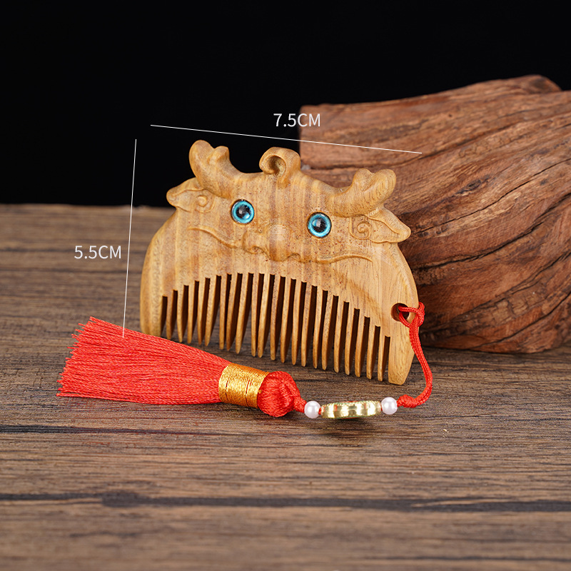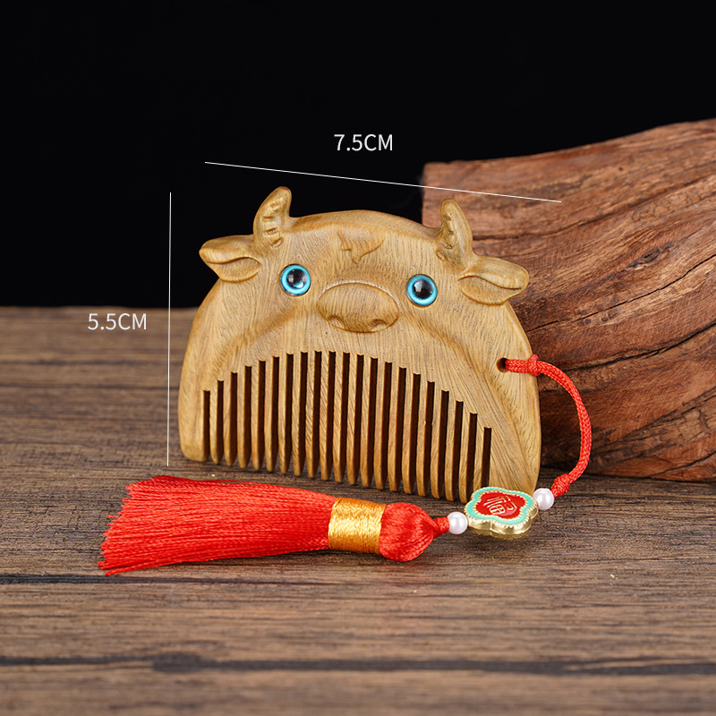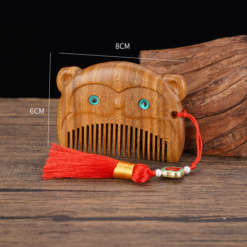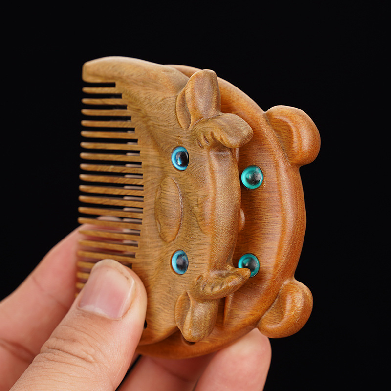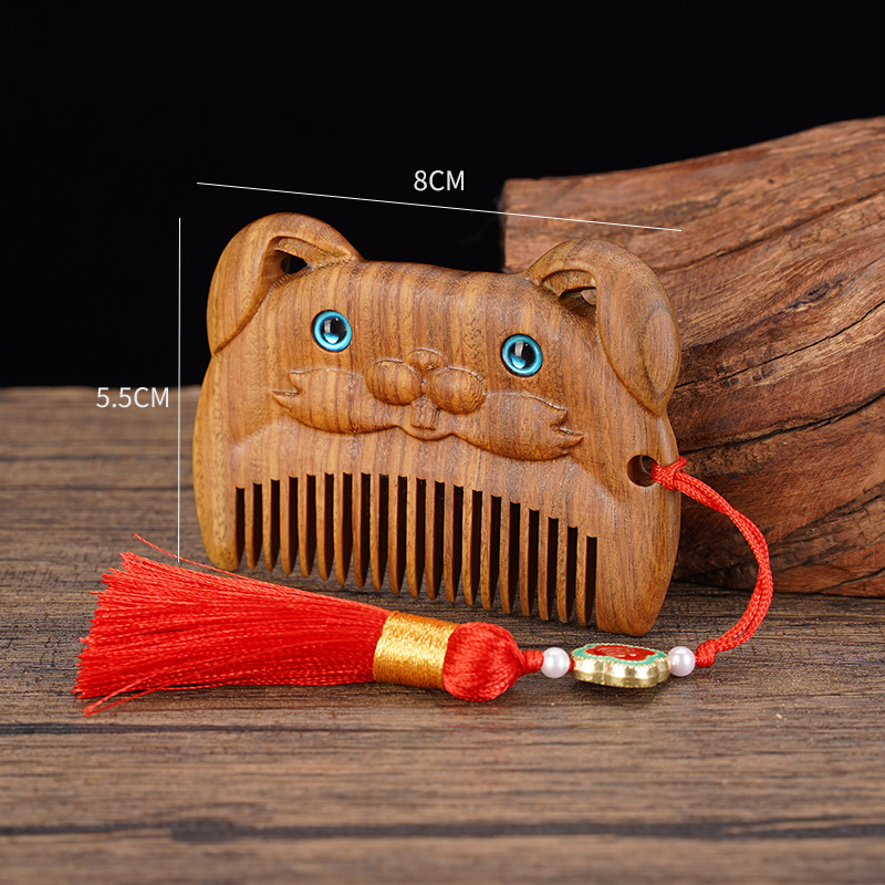 绿檀木生肖口袋梳雕花女生小巧便携美观实用包包梳按摩檀木梳
