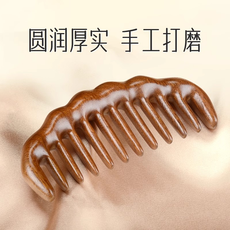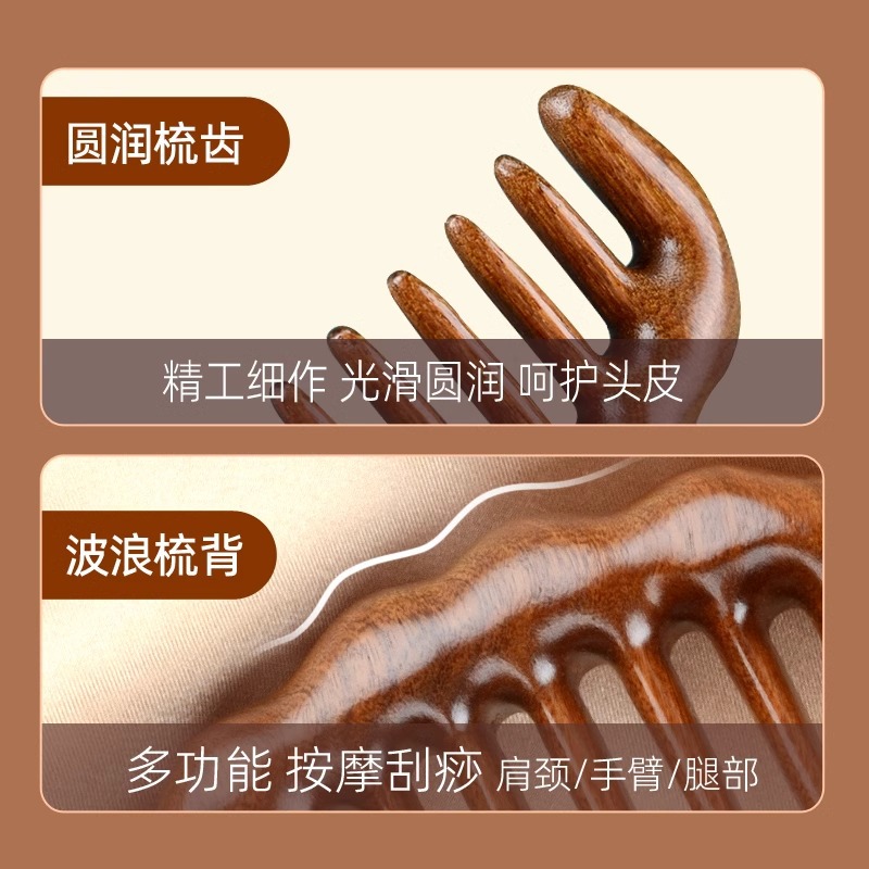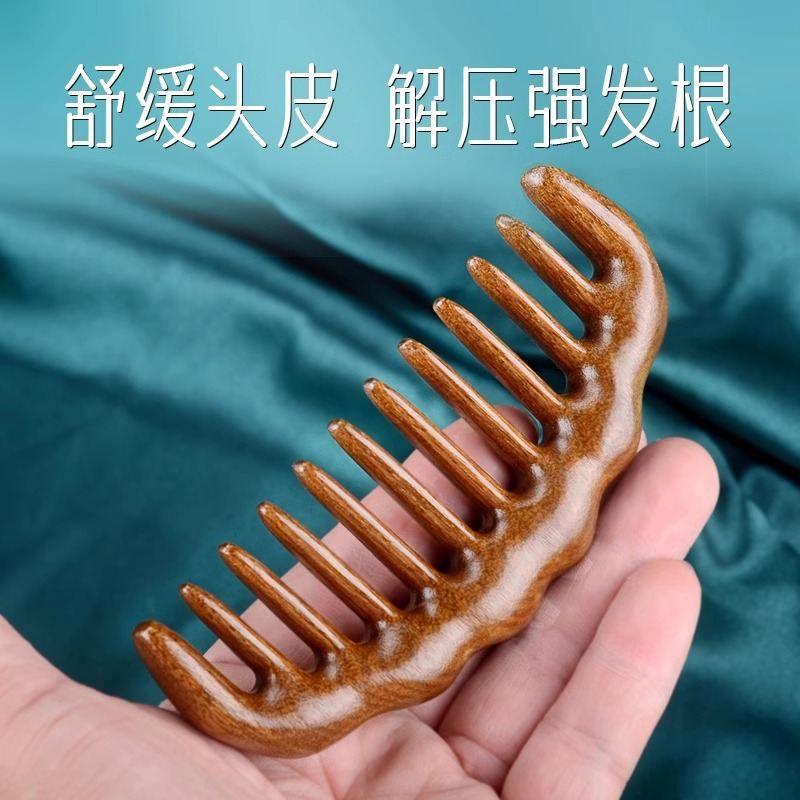 木梳金丝檀大齿天然卷发梳宽齿男女脱发木头家用头部按摩梳子便捷