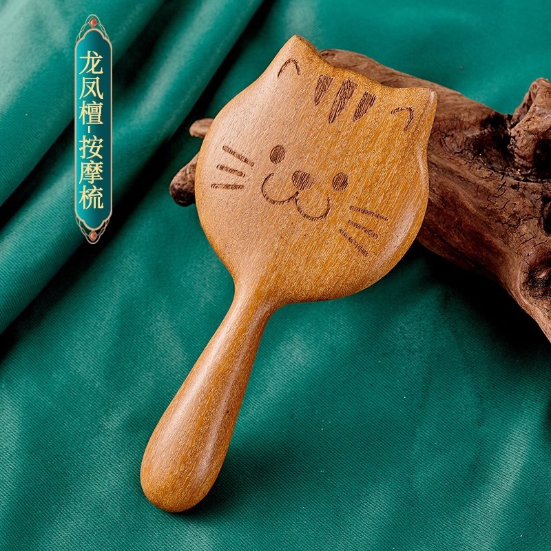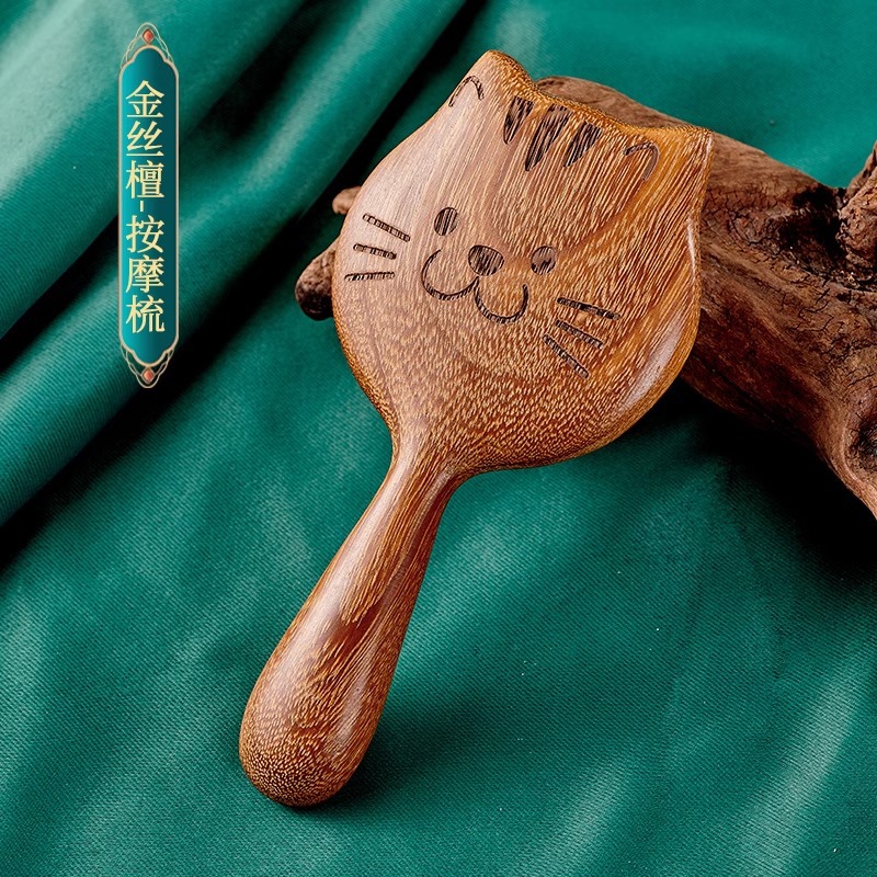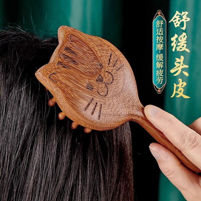 檀木钉钉梳头皮按摩梳头部经络梳粗齿宽齿梳圆齿头梳子小猫插齿梳