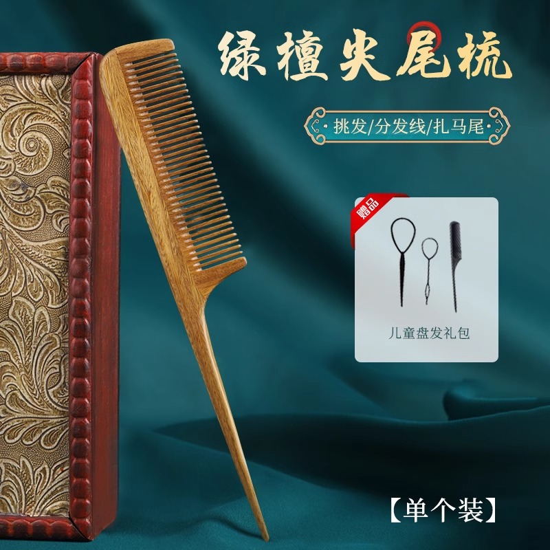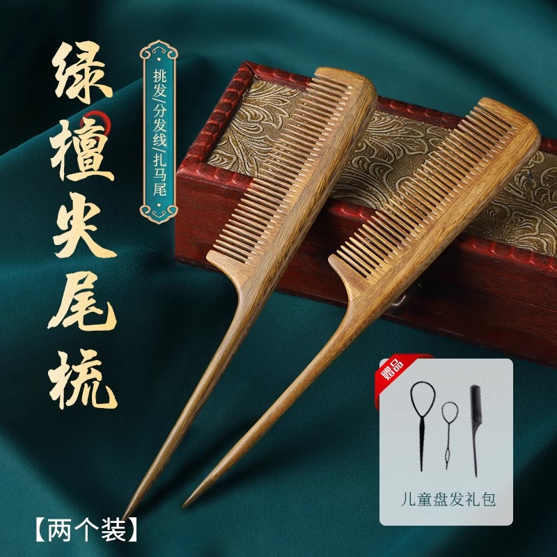 尖尾梳(绿檀木)2把装【送盘发礼包】