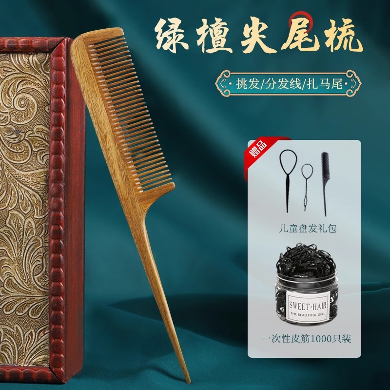 尖尾梳(绿檀木)+一次性皮筋1000个(送盘发礼包)