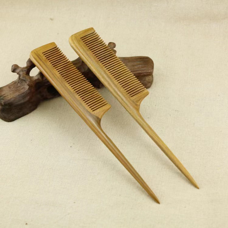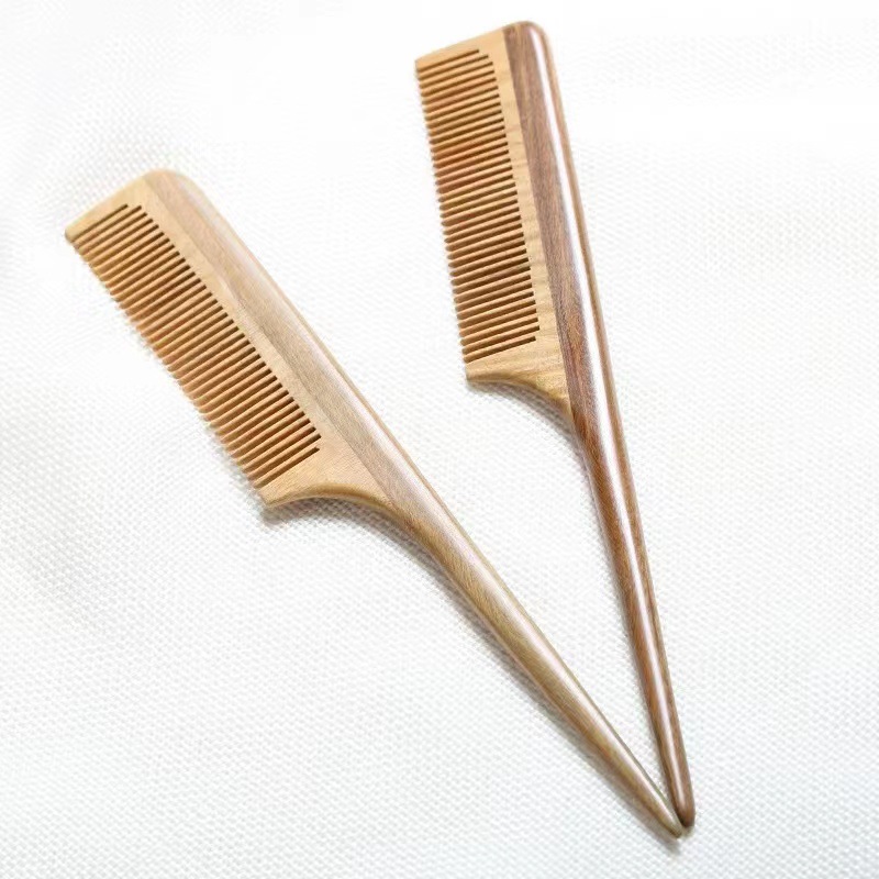 绿檀木榫卯拼接尖尾梳儿童编发盘发檀木分针梳尖头檀木美发梳