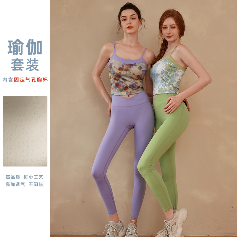 印花瑜伽服套装女运动文胸健身背心防震跑步上衣健身裤提臀打底裤