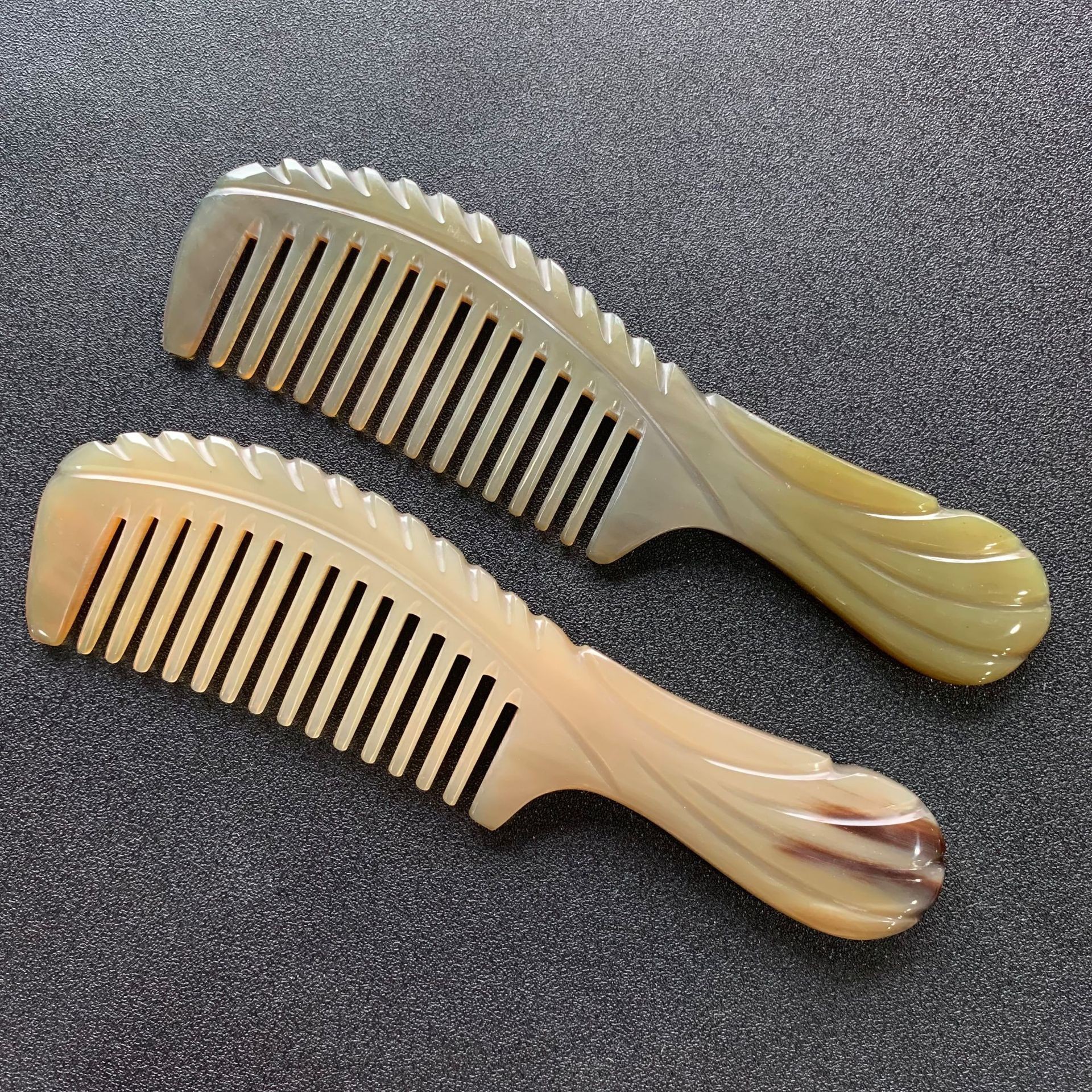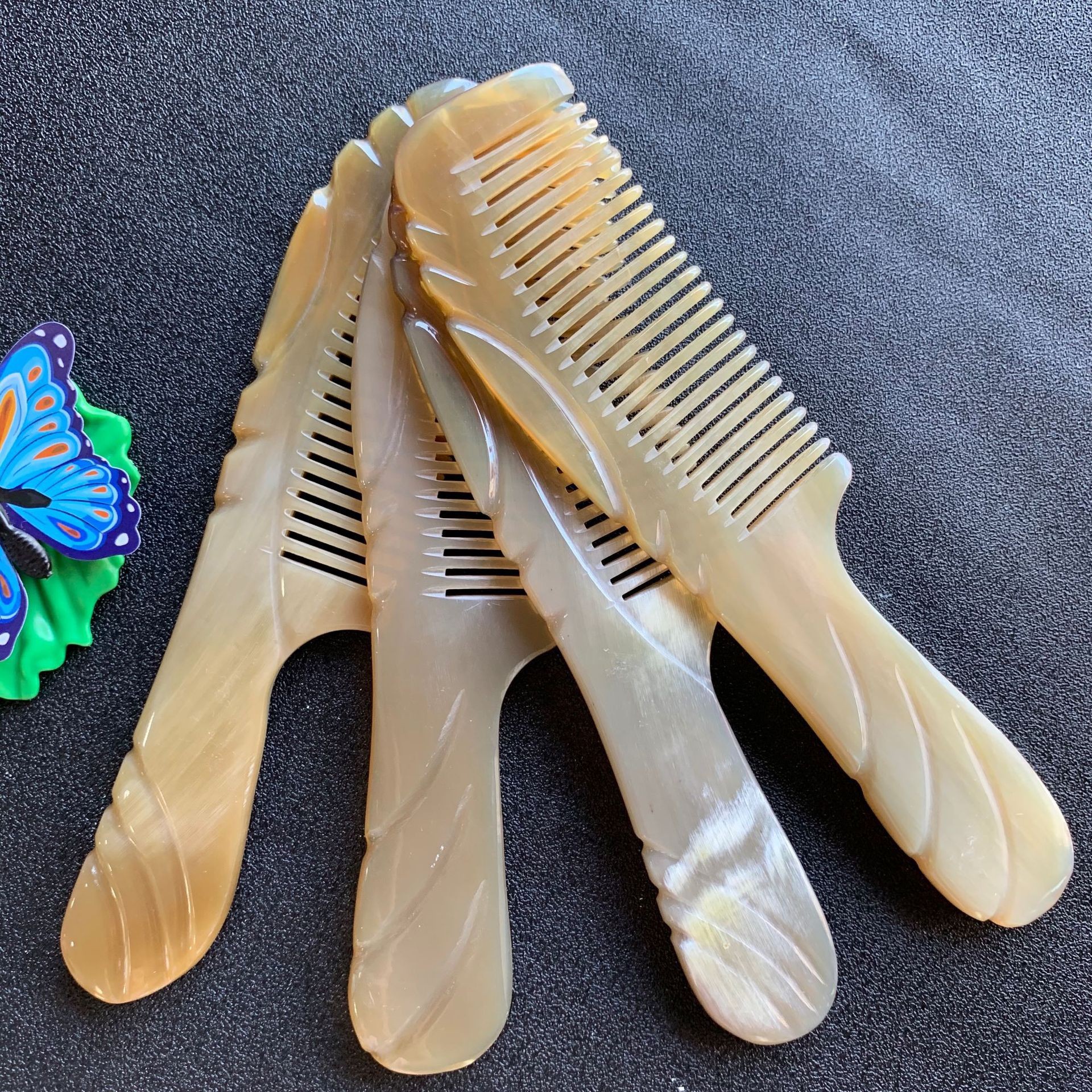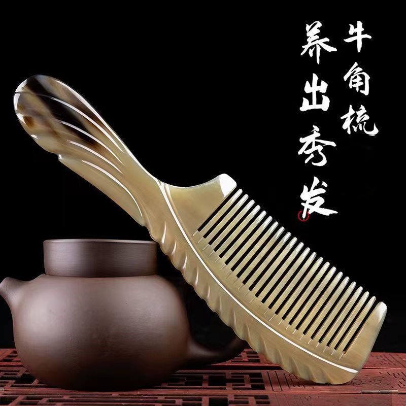 牛角按摩梳女士长发梳家用头部经络按摩梳子牛角花型手柄梳