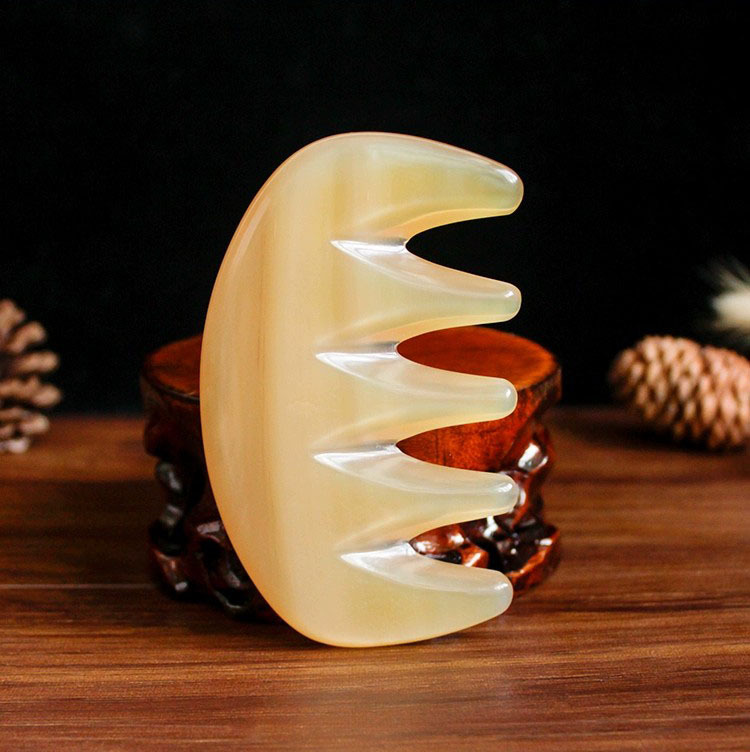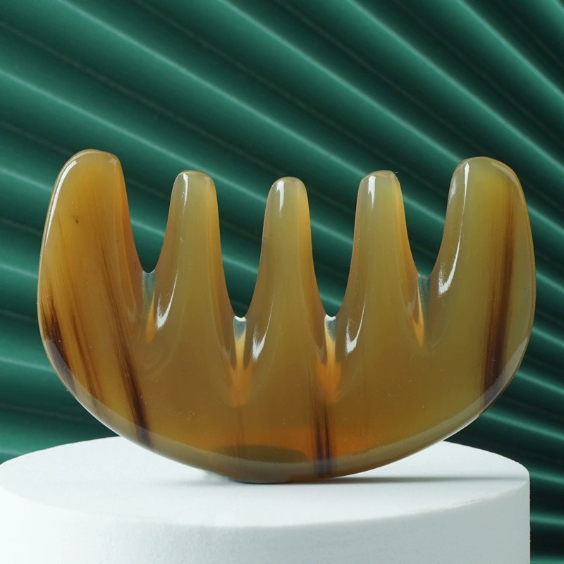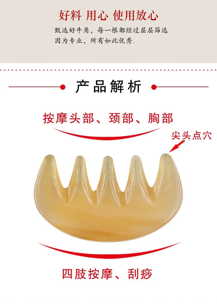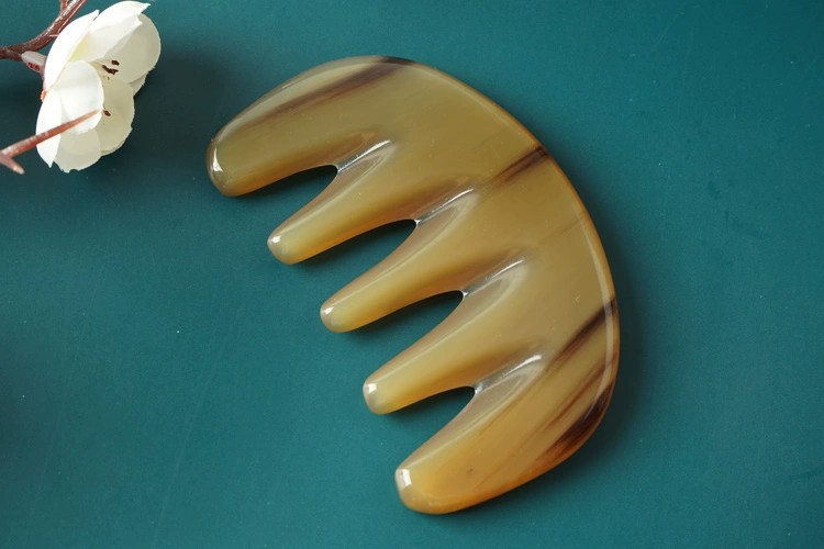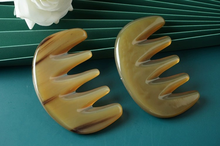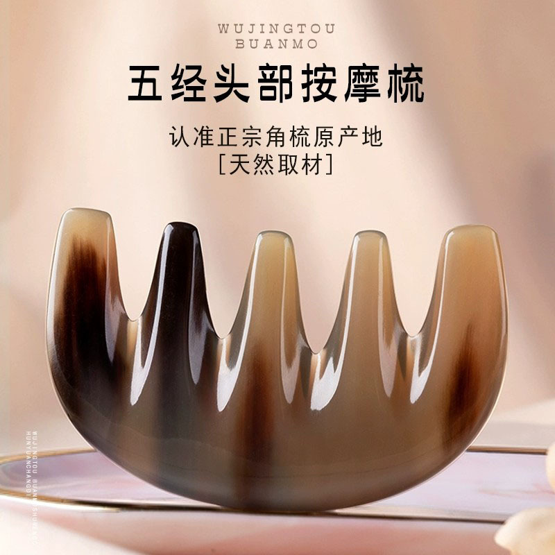 牛角羊角按摩梳头部经络梳牛角五齿按摩梳刮痧梳牛角洗头梳