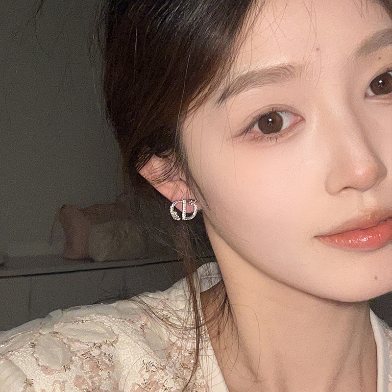 微镶锆石龙形字母CD耳环女轻奢精致独特耳钉新款高级感耳饰