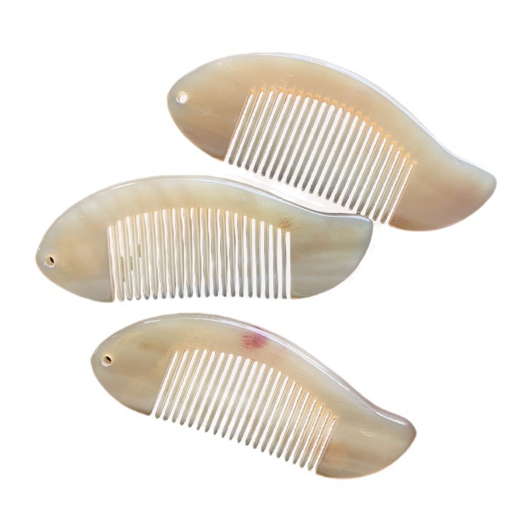真品牛羊角鱼梳子便携随身包包口袋梳精品羊角金鱼梳牛角梳