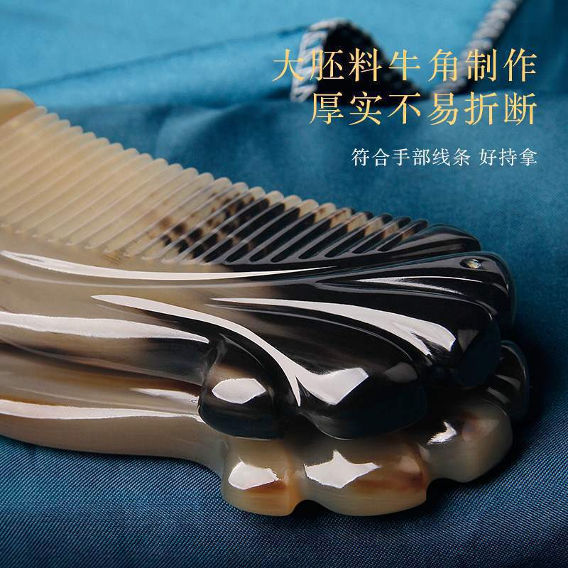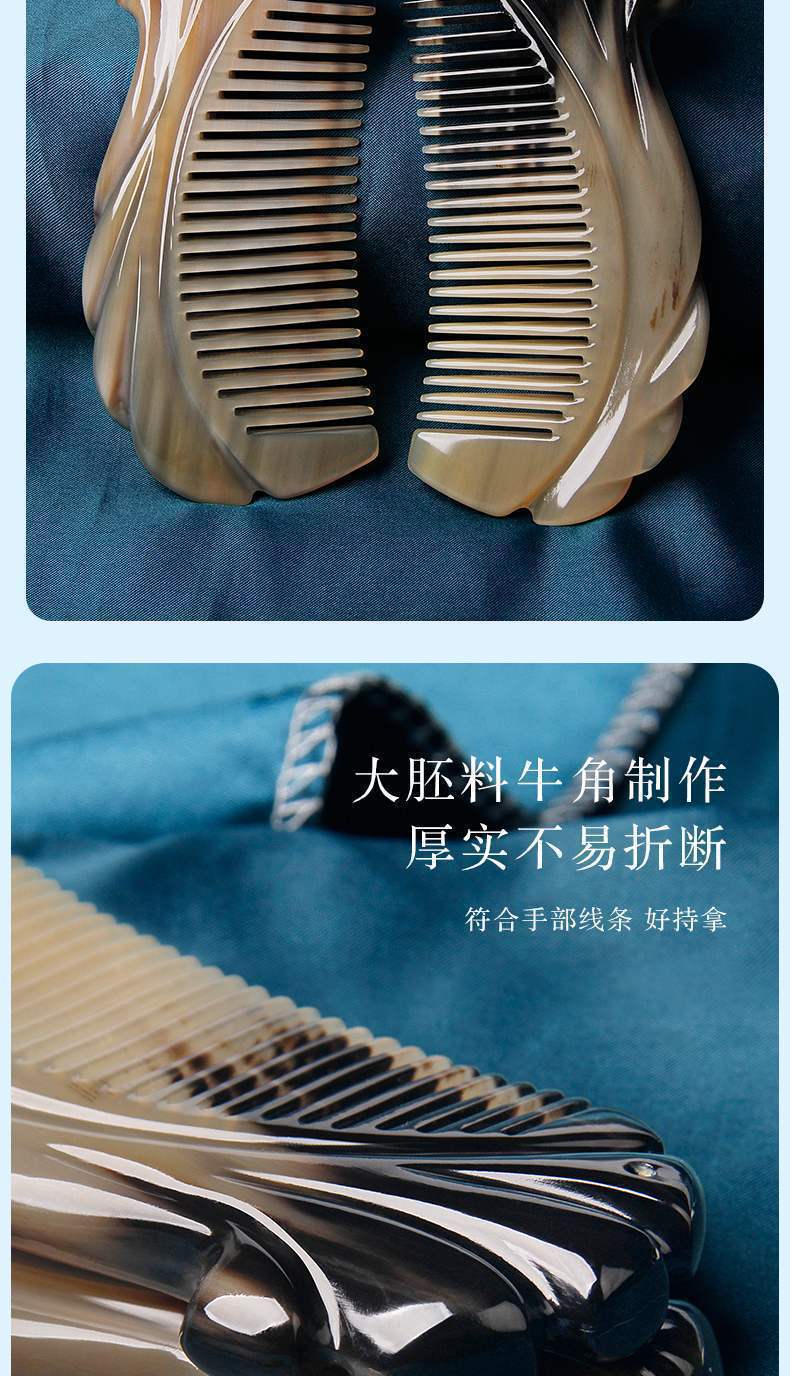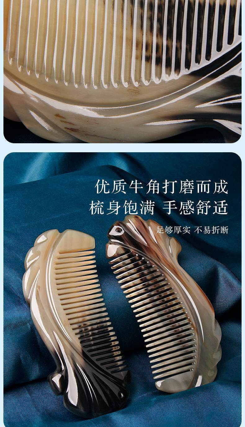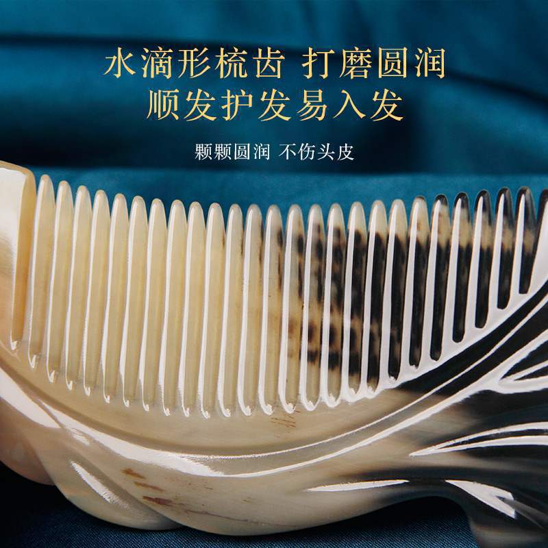 天然牛角梳子正品加厚牦牛角女士专用长发便携家用按摩头部