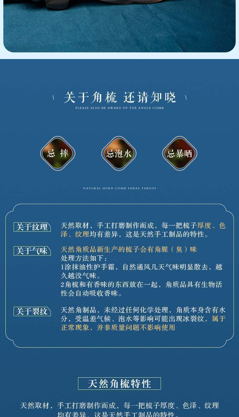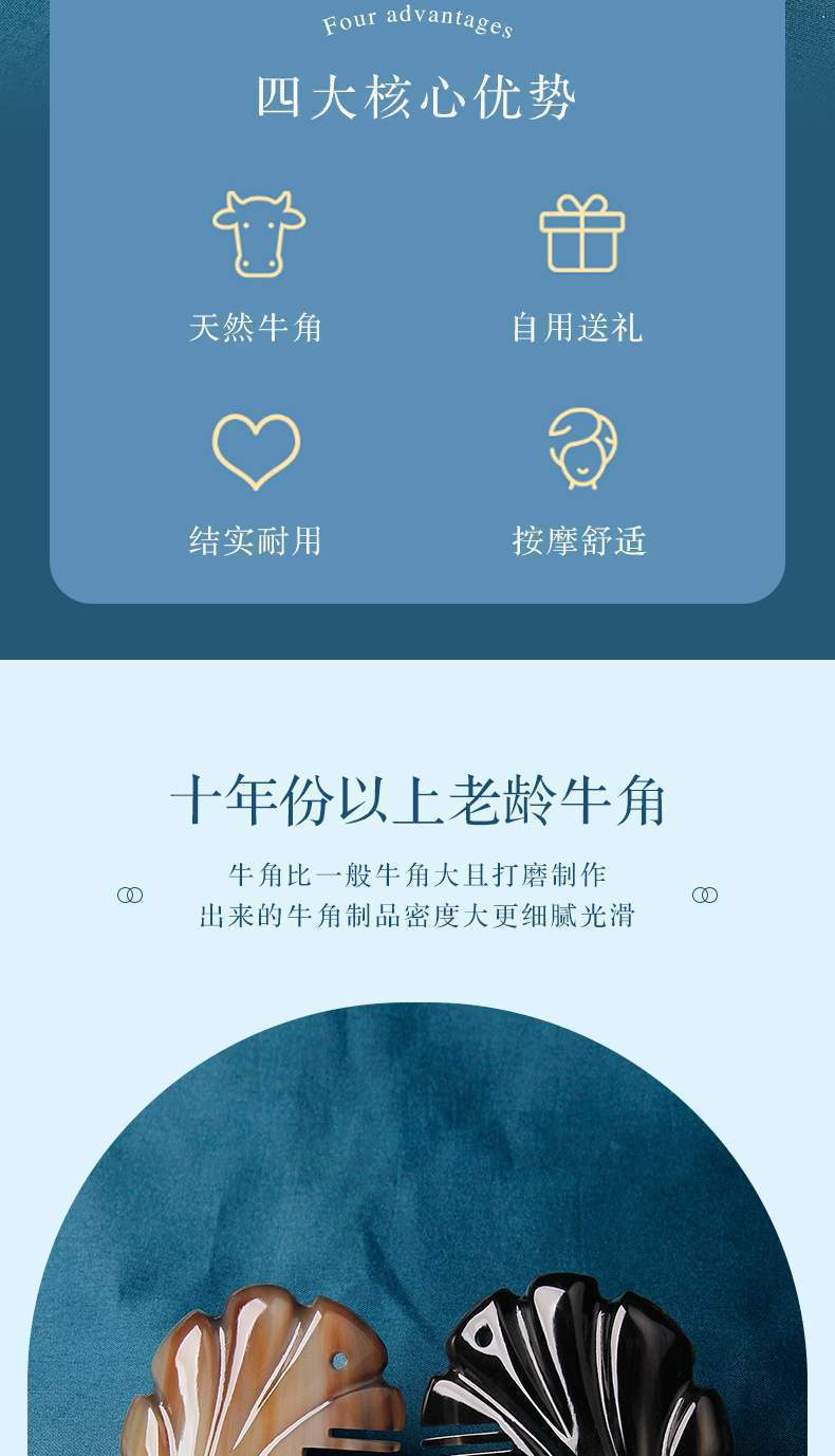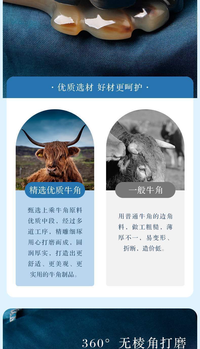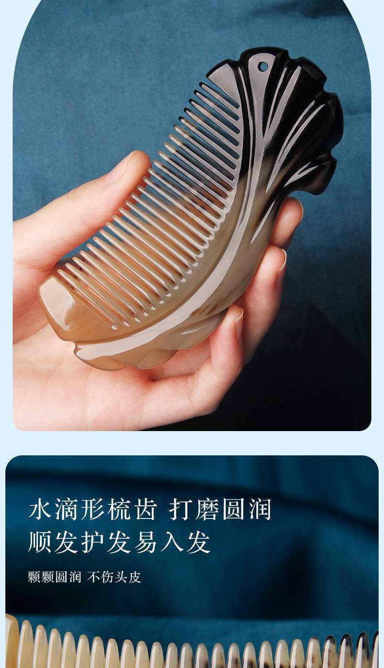 天然牛角梳子正品加厚牦牛角女士专用长发便携家用按摩头部