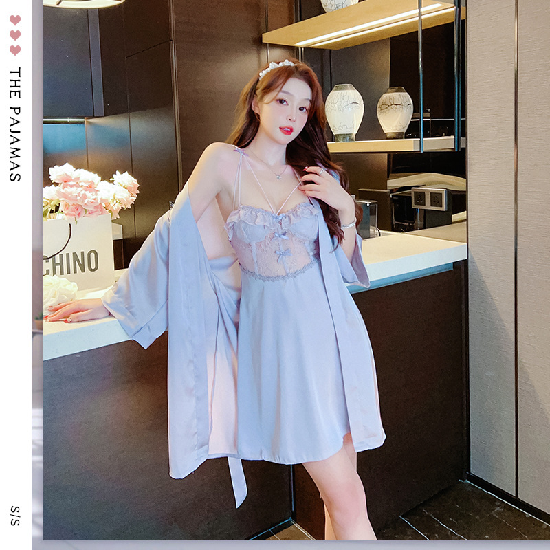新款春季时尚女士缎面雪纺吊带睡衣家居服仿真丝透气厚款睡衣