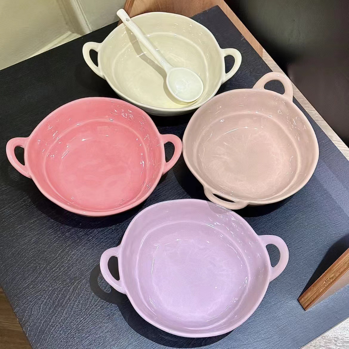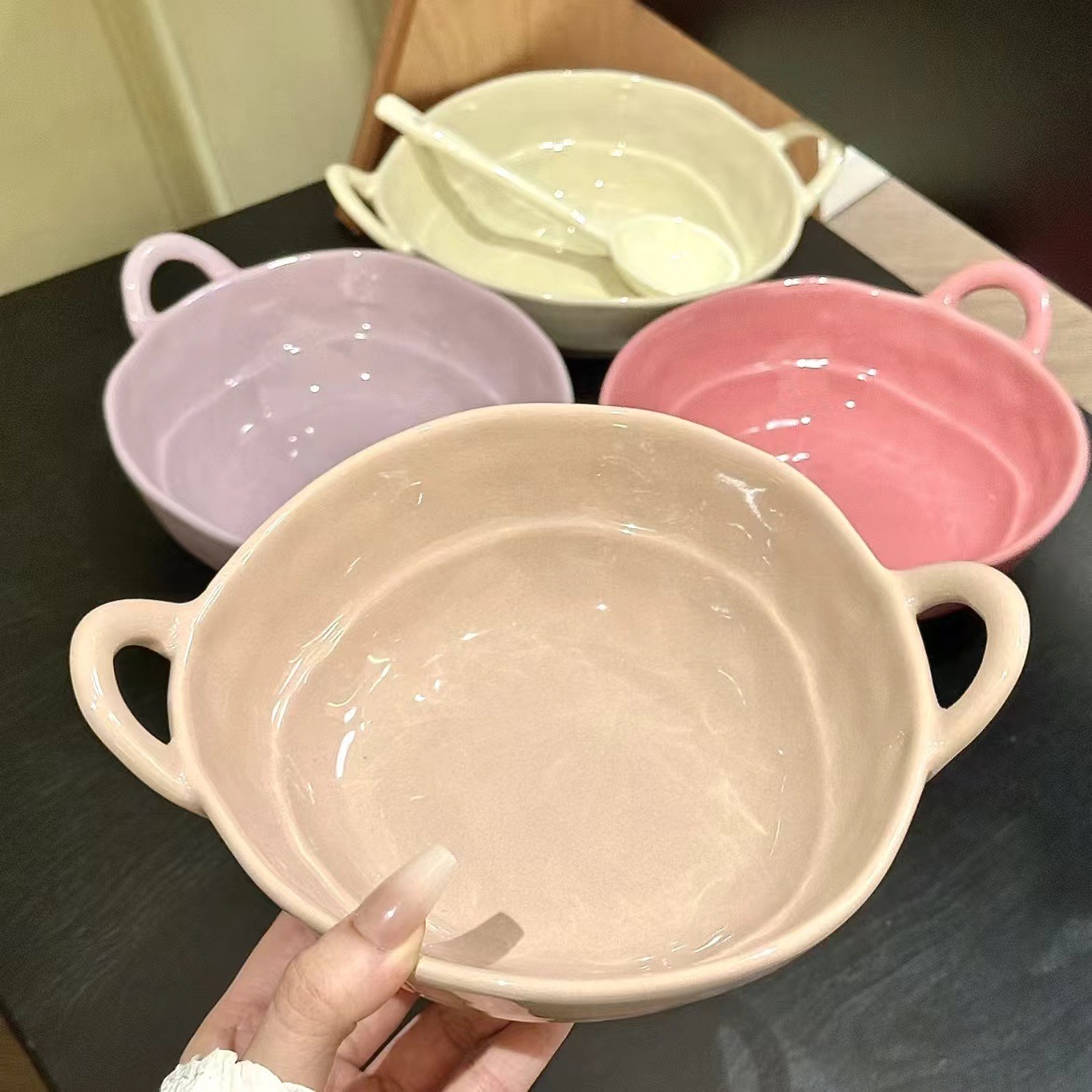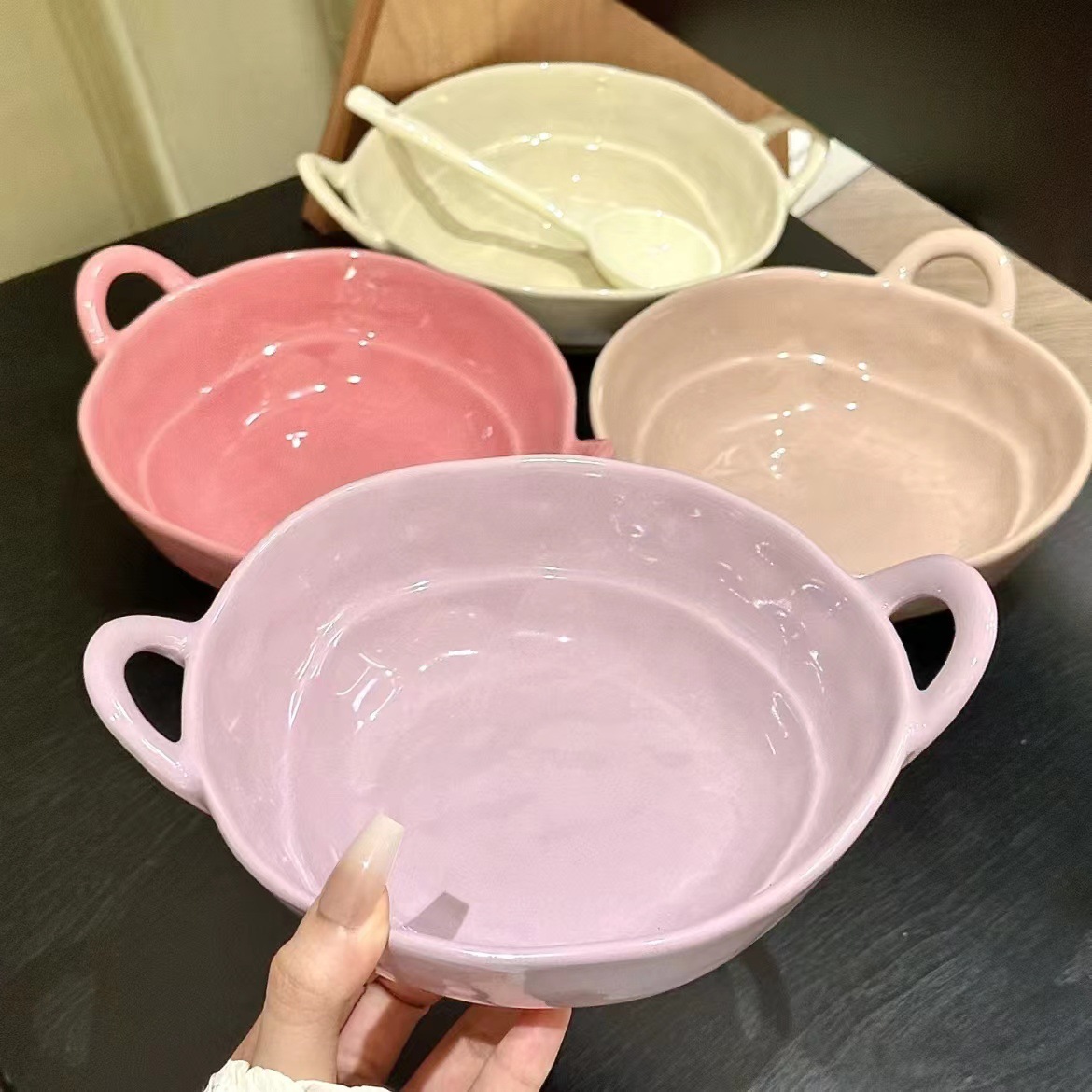 手捏不规则双耳碗水果沙拉碗泡面碗家用宿舍学生餐具螺蛳粉