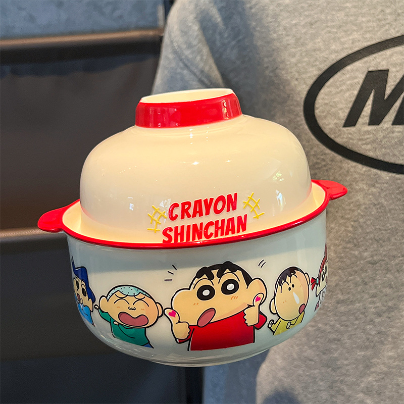 蜡笔小新可爱卡通泡面碗带盖宿舍用家用大容量